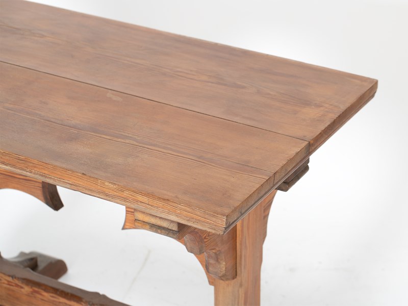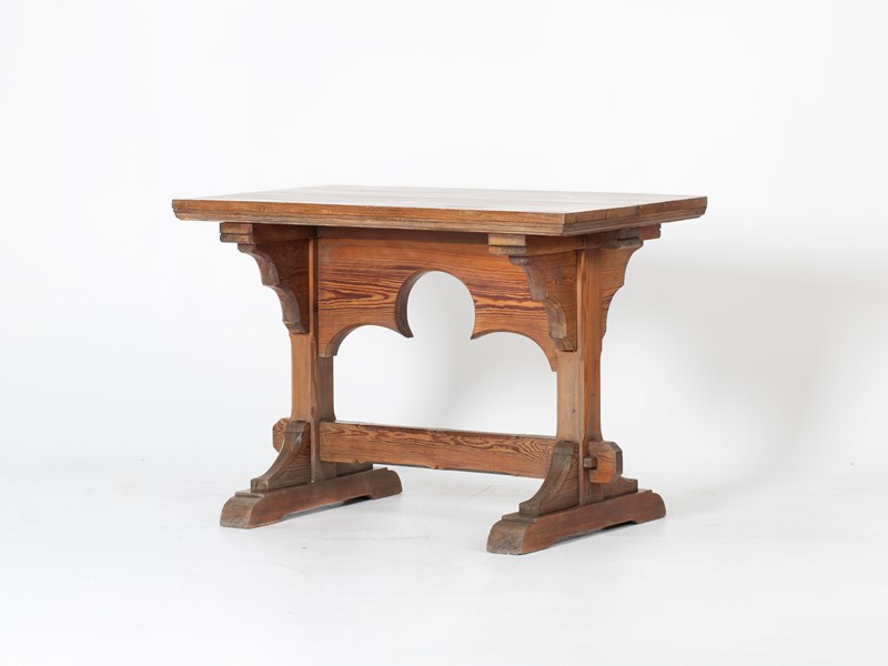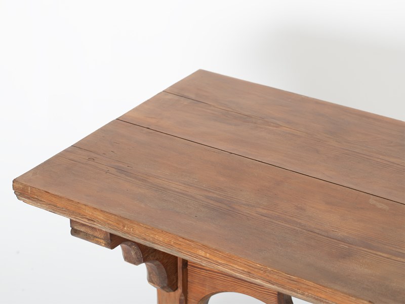 Gothic Revival Pitch Pine Trestle Table