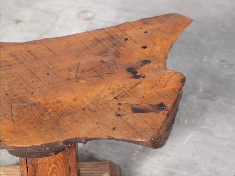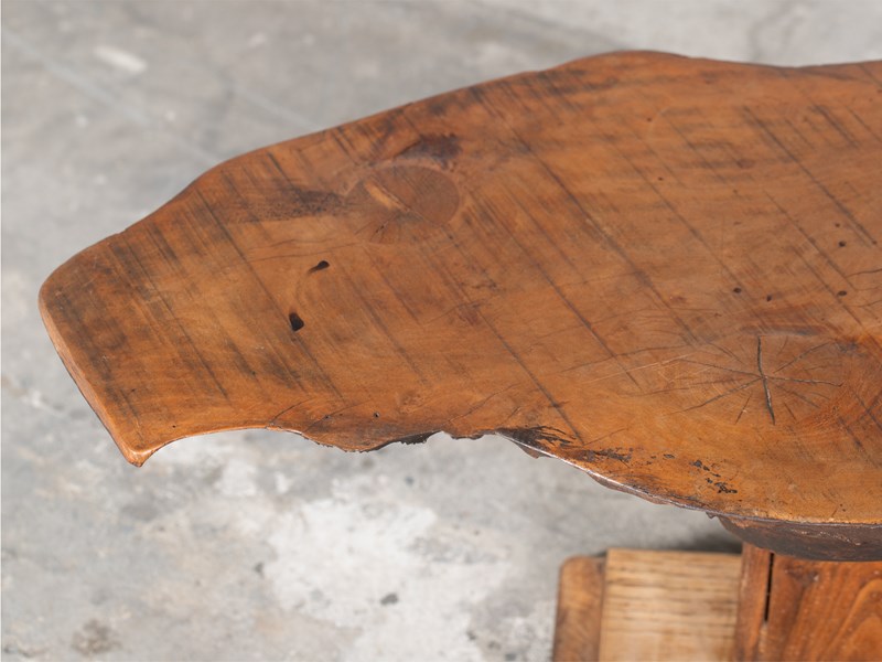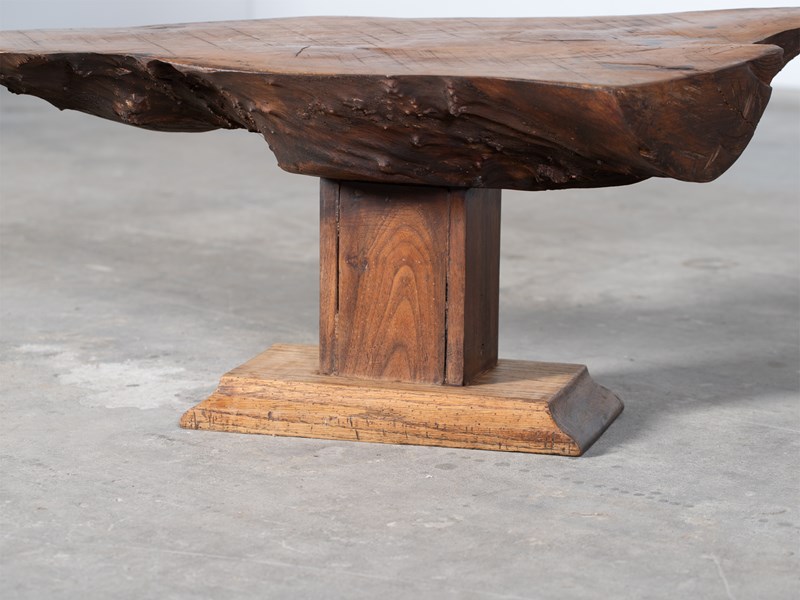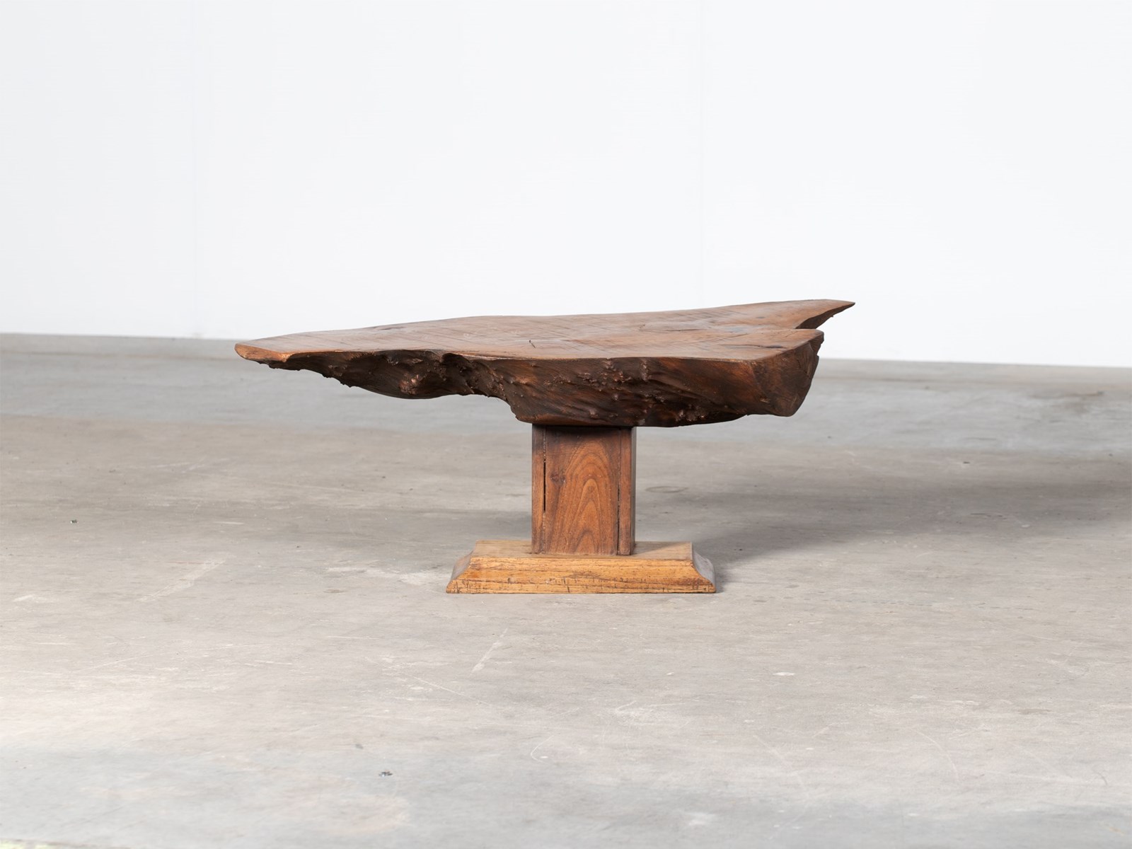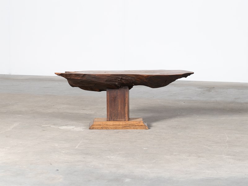 A naturalistic elm coffee table with single slab top. French, mid 20C.