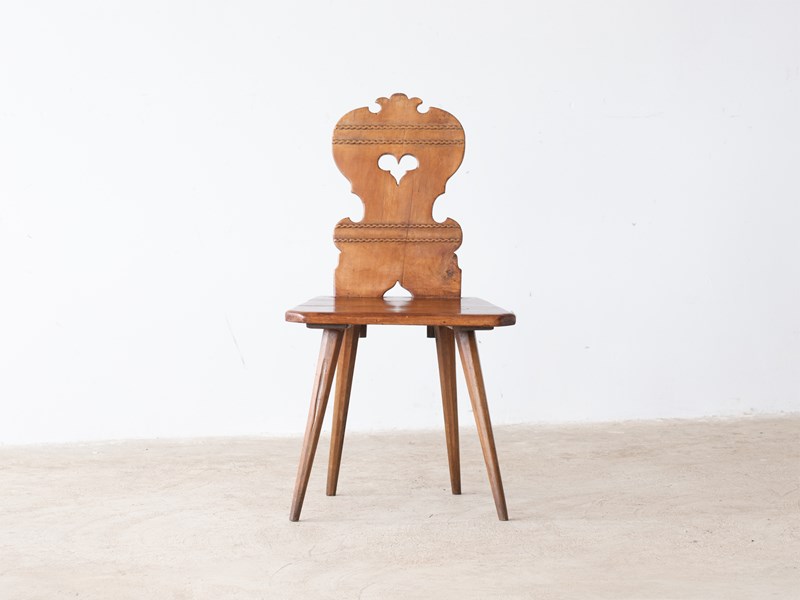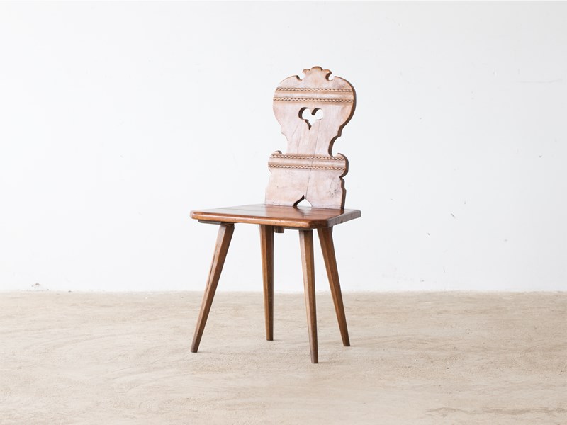 A mixed timber folk art side chair from the Savoie region. France, 19C.