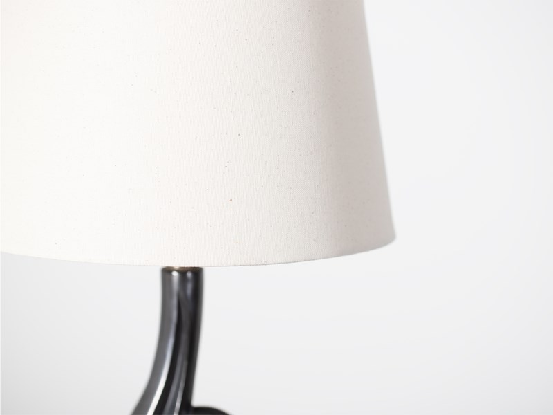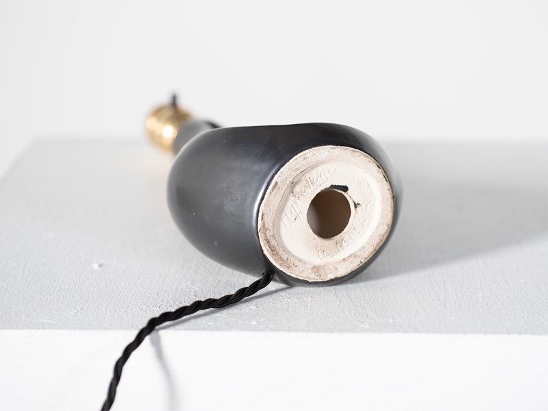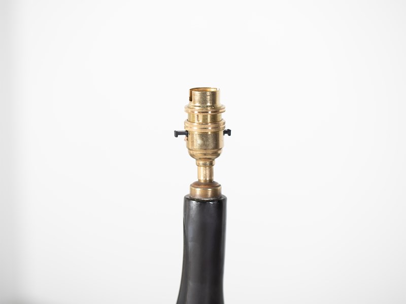 A sculptural table lamp with gunmetal glaze by ceramicist Gil Agnoloni. Italian, c. 1960.