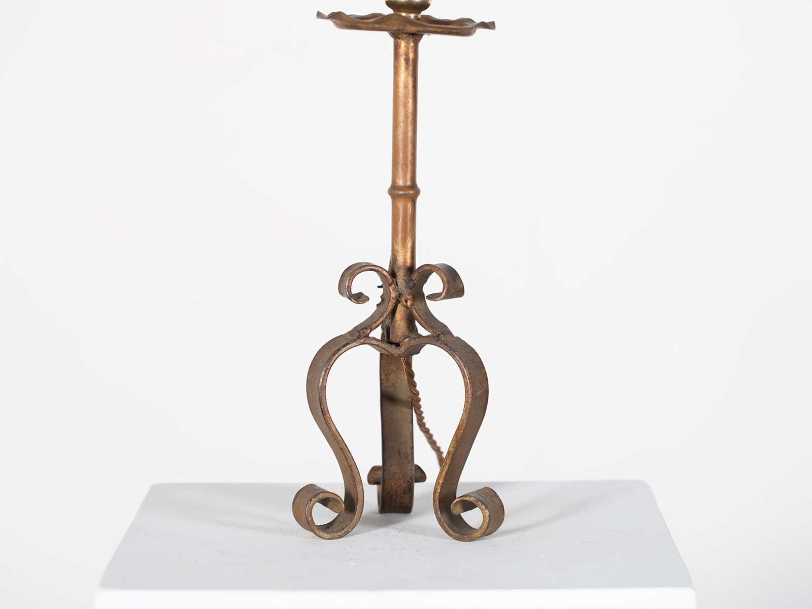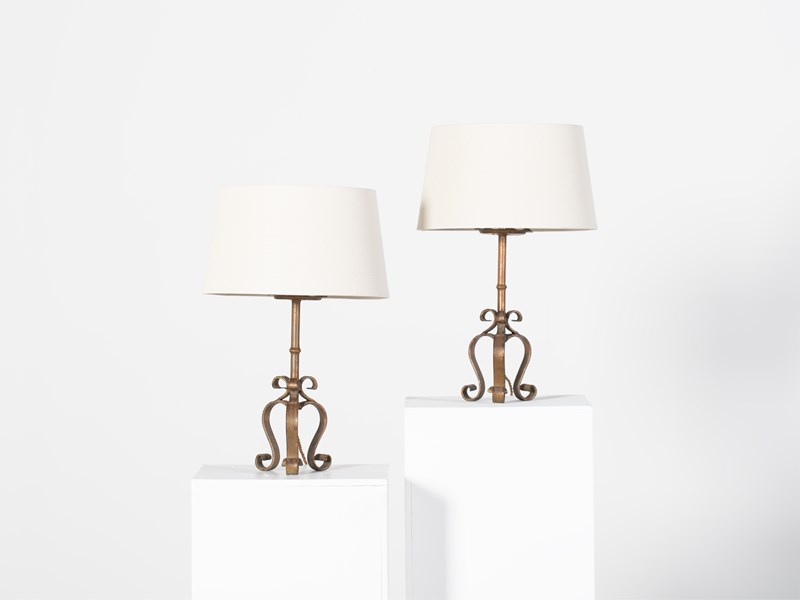A pair of gilt iron table lamps. Spanish, mid 20C.