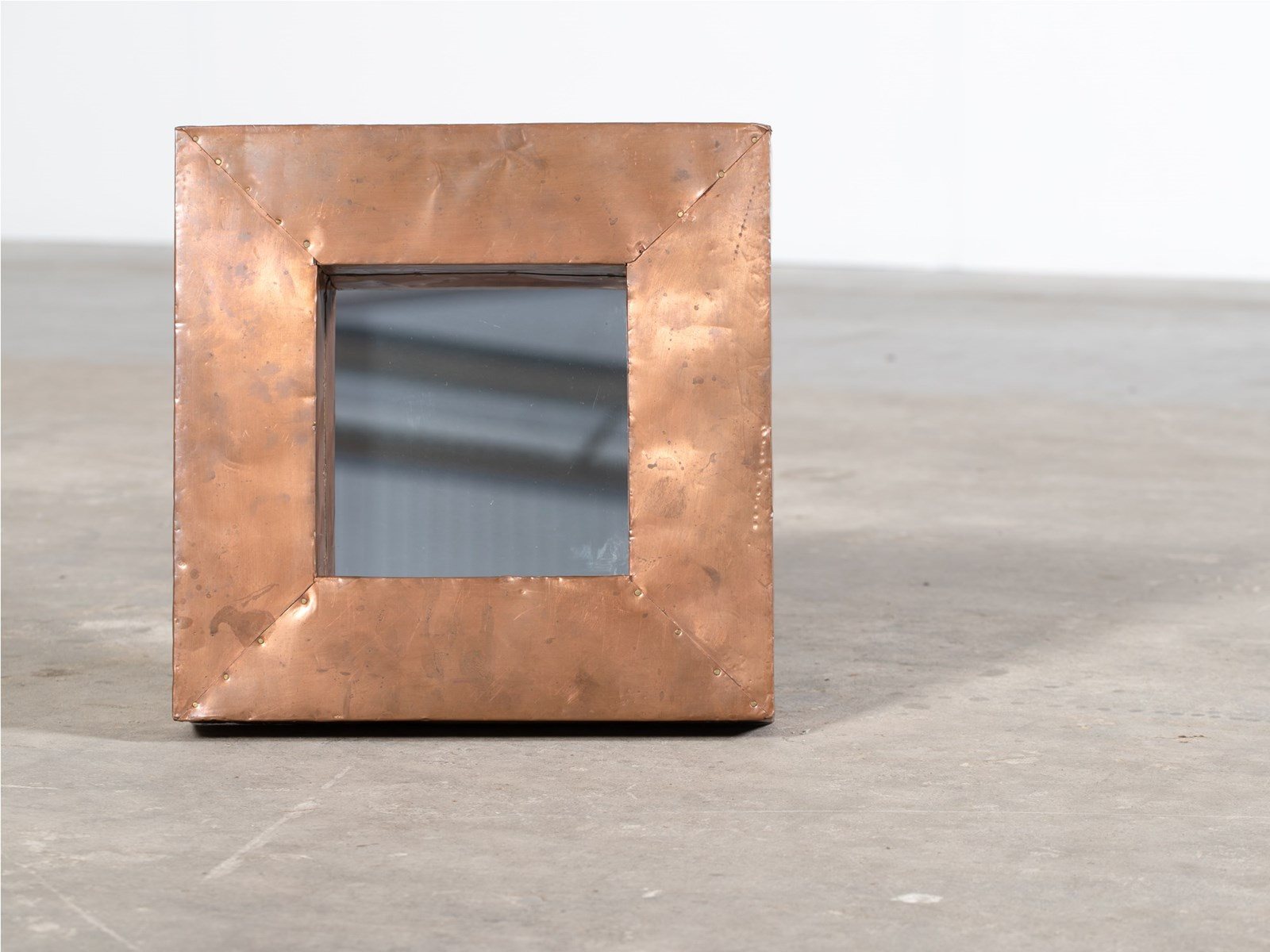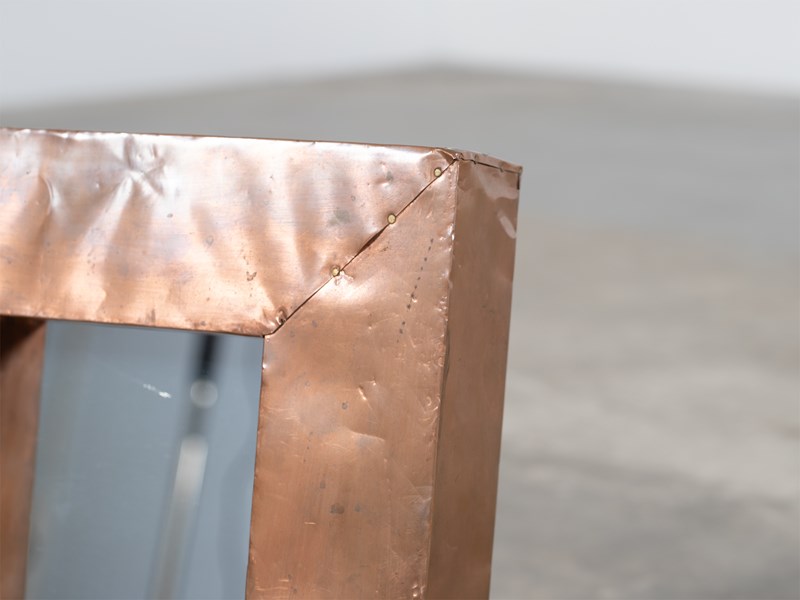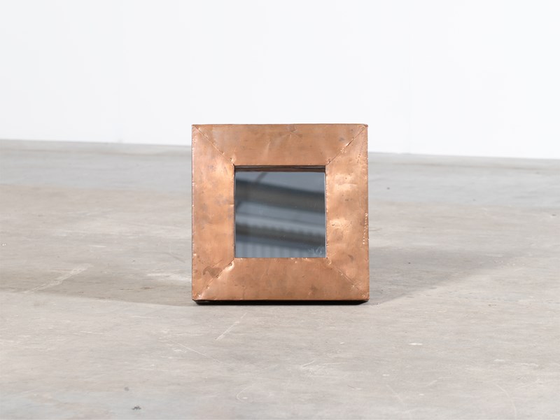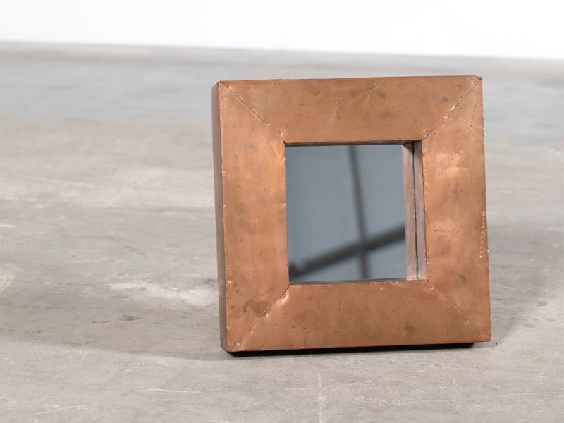 A chunky square copper-clad mirror. English, mid-late 20C.