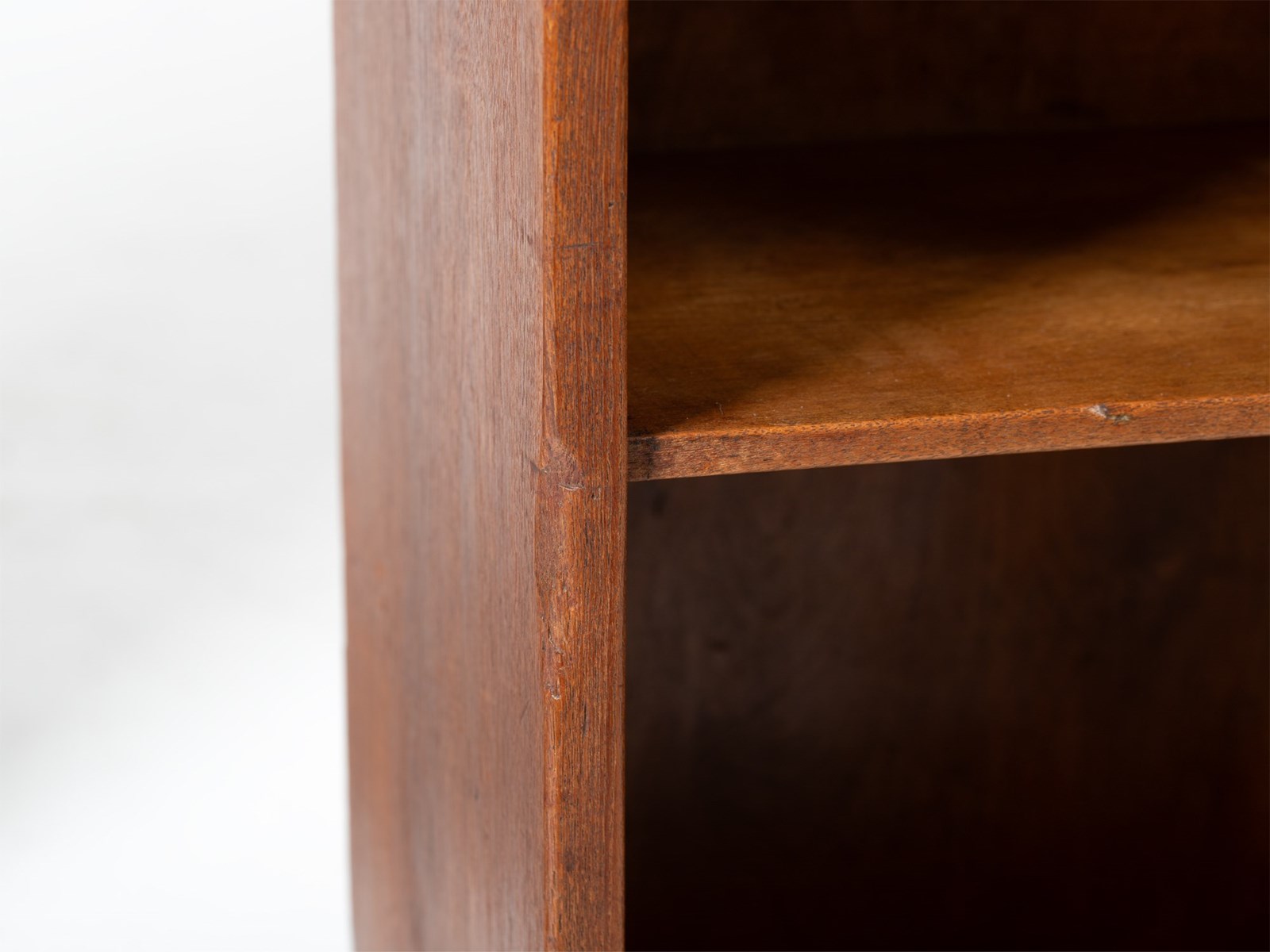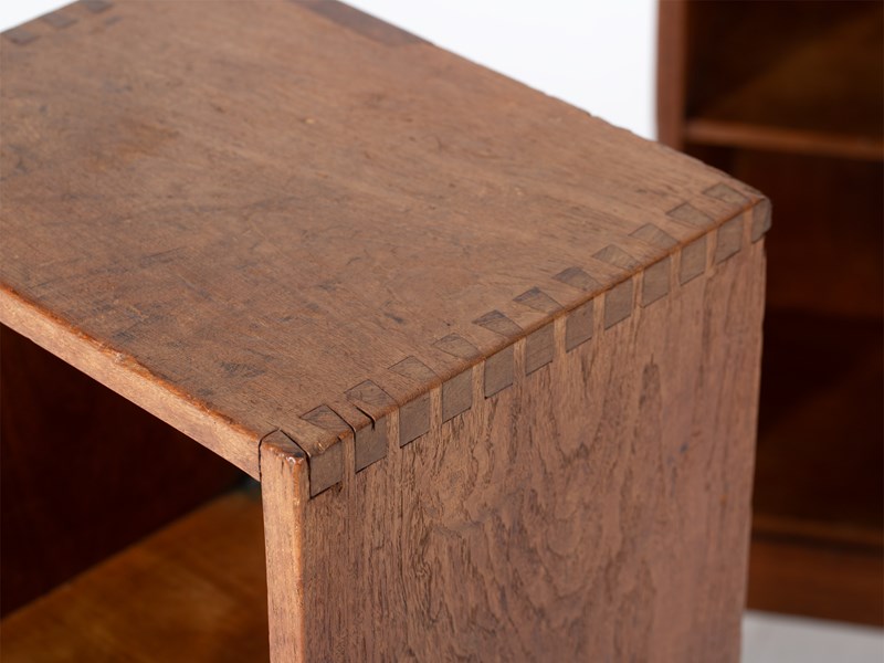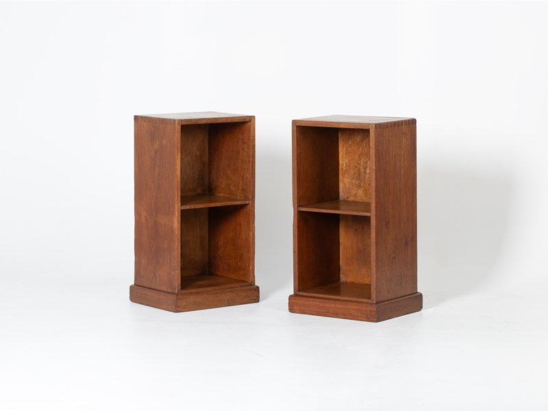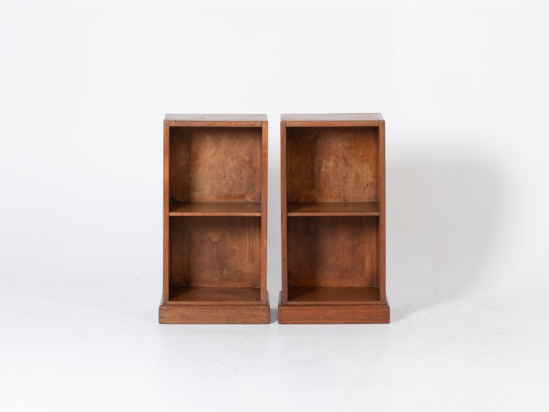 A pair of solid teak open-front cabinets or bookcases. English, c. 1930s.