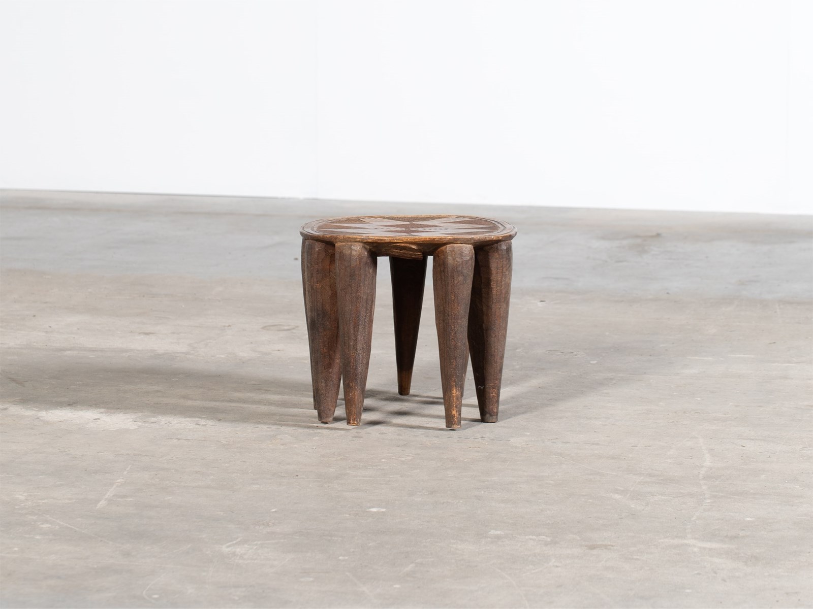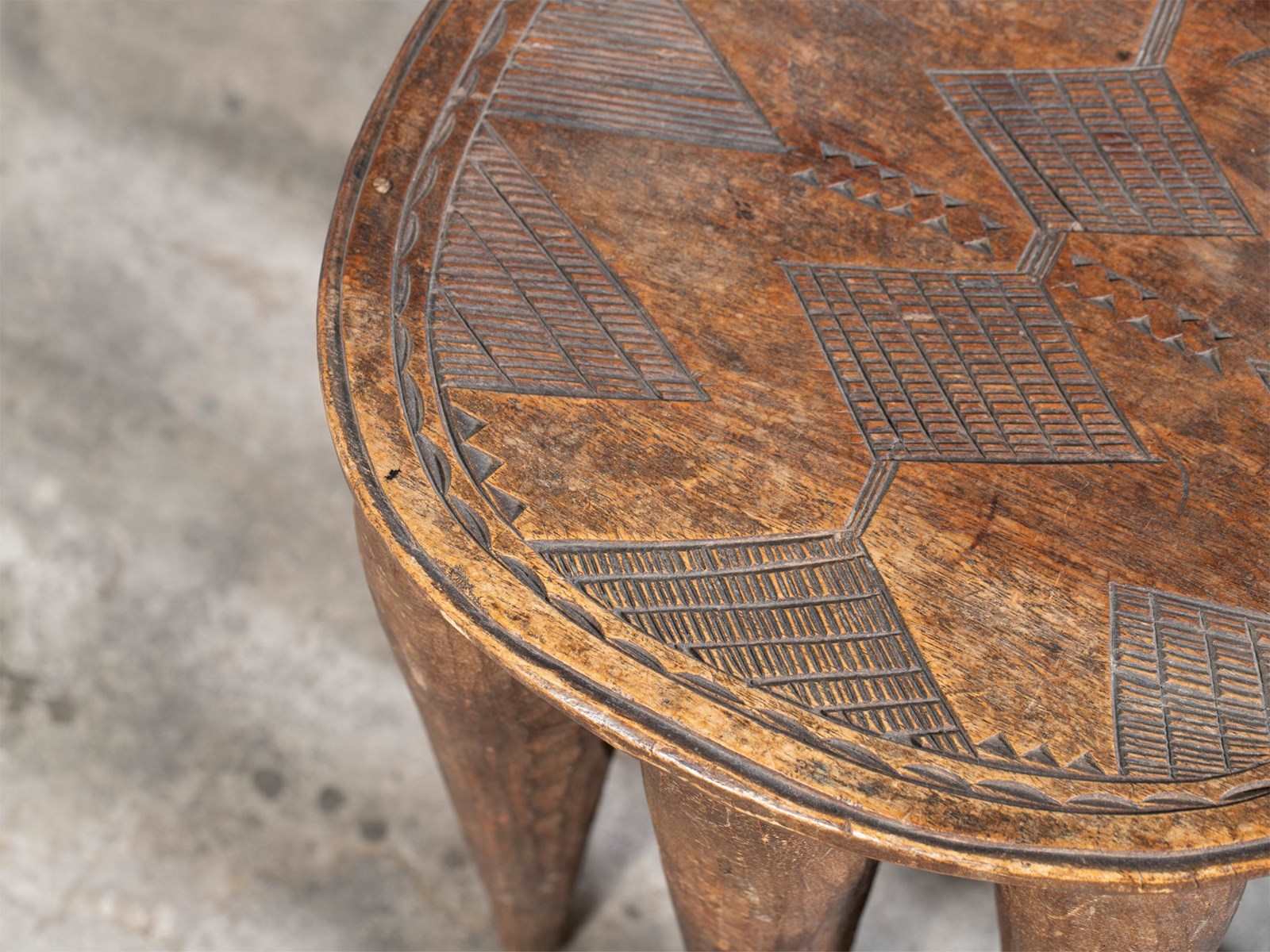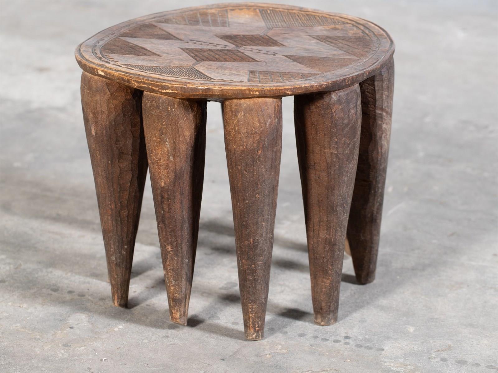A tribal Nupe stool or side table carved from a single block of hardwood. Nigerian, early-mid 20C.