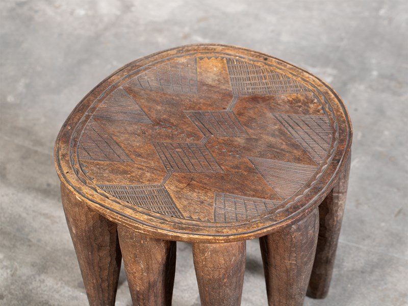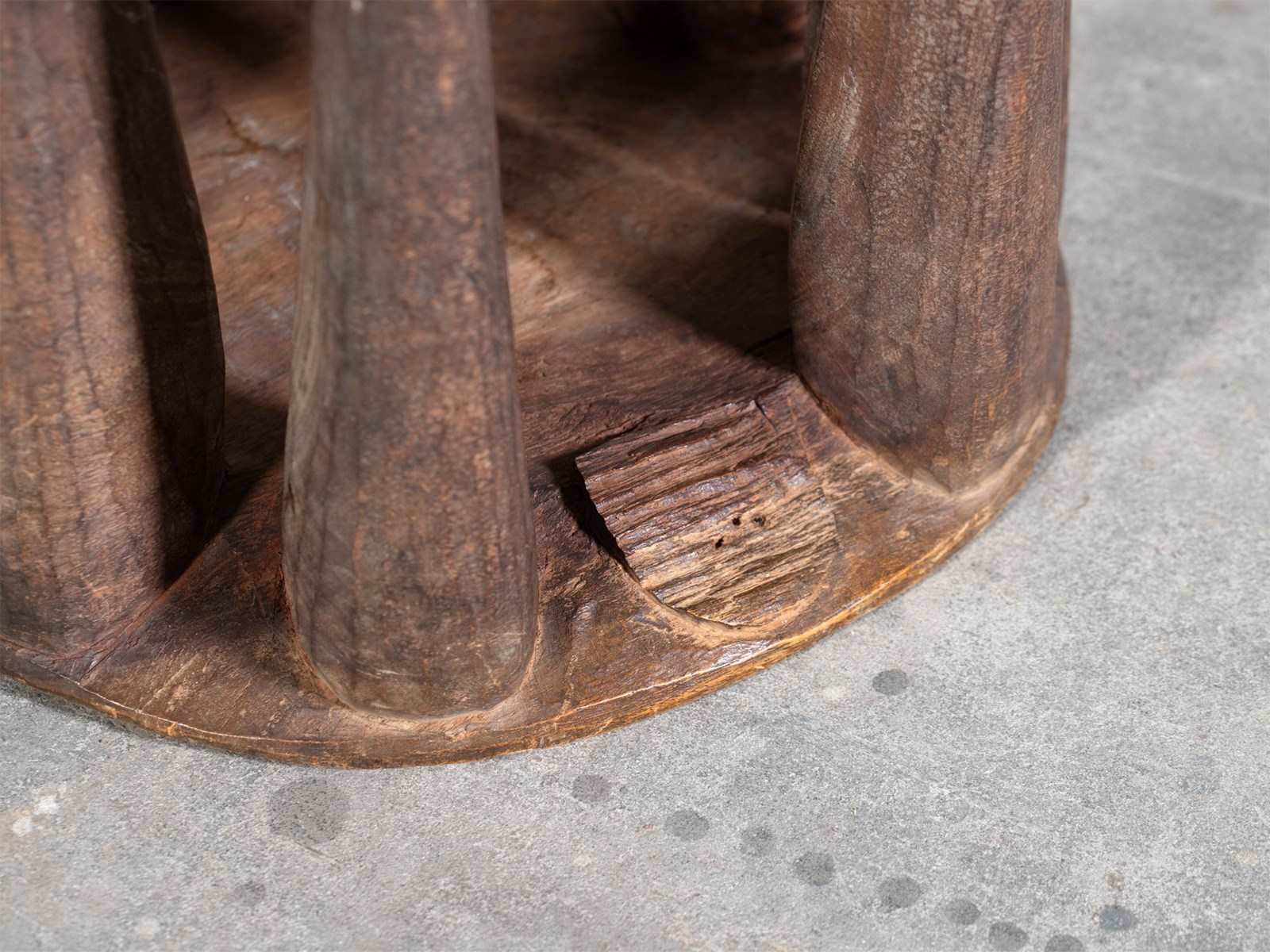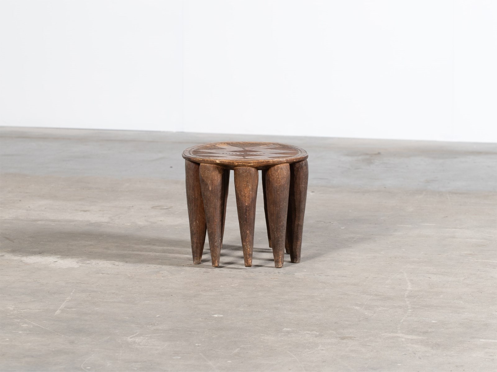 A tribal Nupe stool or side table carved from a single block of hardwood. Nigerian, early-mid 20C.