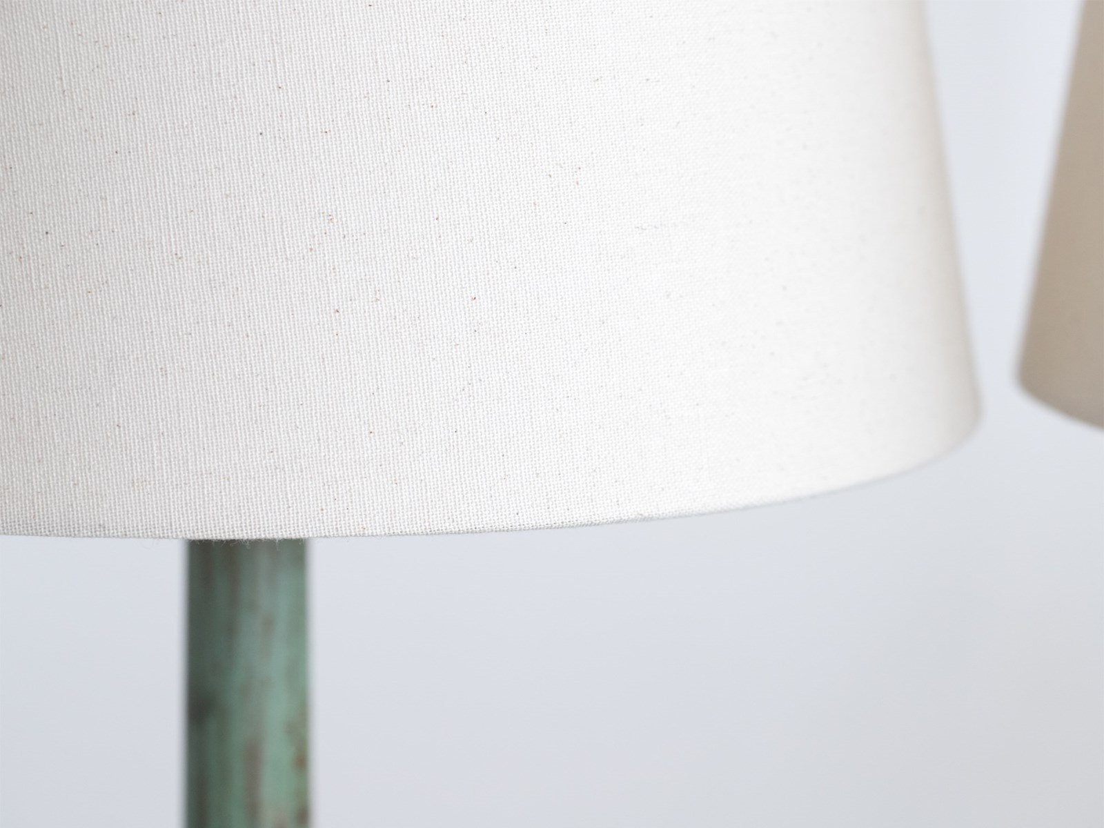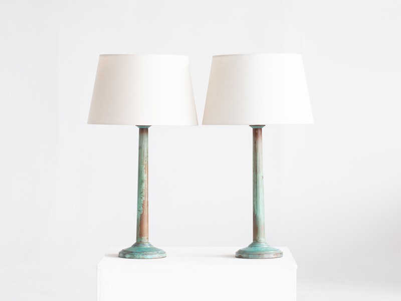A pair of copper table lamps with applied verdigris finish. English, c. 1990.