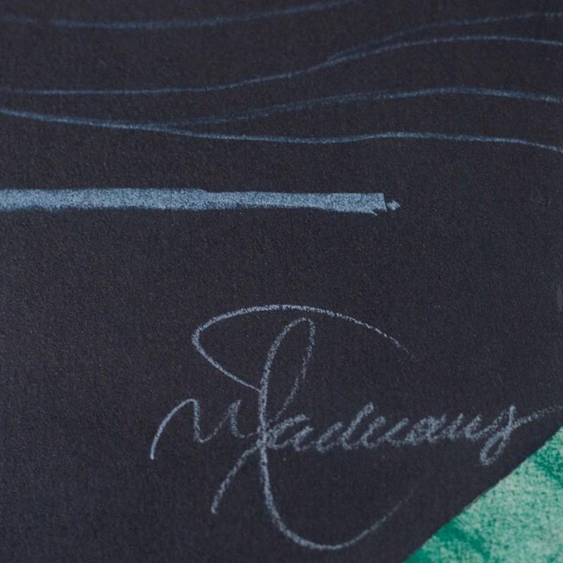 The artist’s identity has not been established. Based on technique and visual structure, the works align with late 20th-century abstract graphic production, emphasizing geometry, process, and non-representational form.