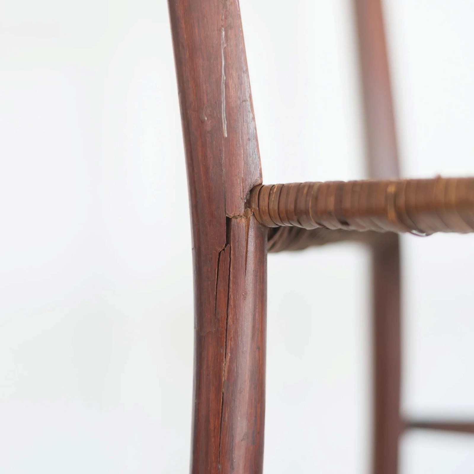 Original cane seats with visible age-related wear; one chair has slightly loose joints and the other exhibits very minor joint looseness consistent with age. Small splits joint upwrite part leg reglued. Please see photographs.