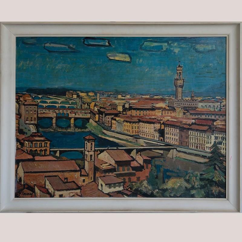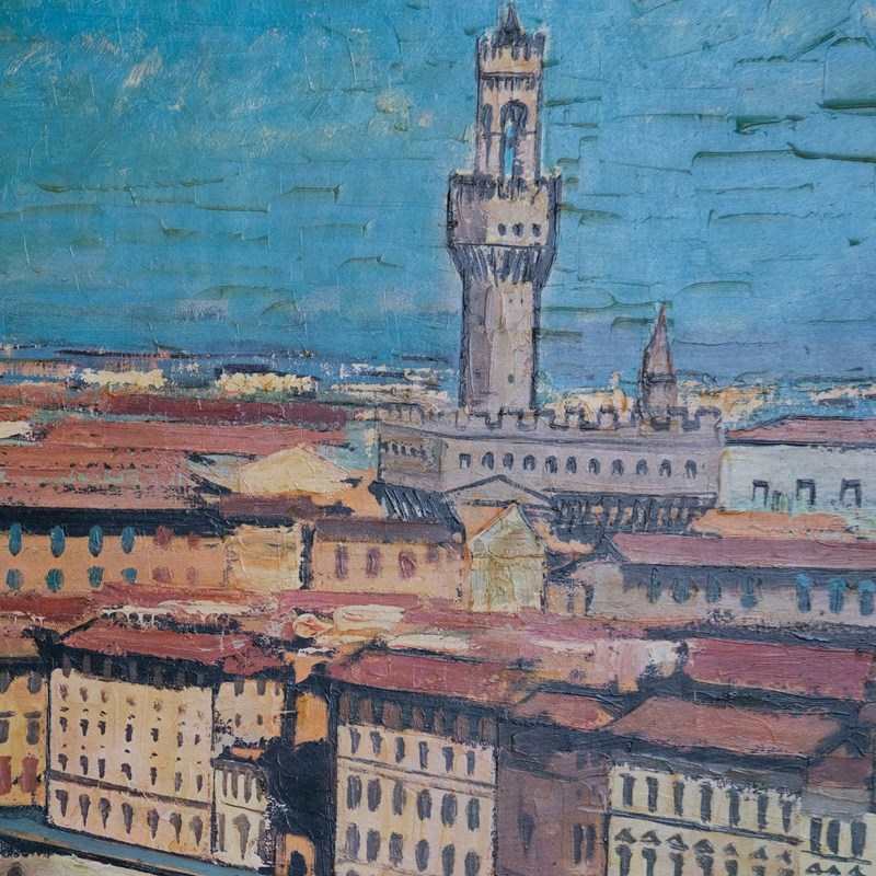 Federico Lloveras masterfully portrays the timeless beauty of Florence in this luminous large-format oleograph. The composition captures the city’s golden architecture and the gentle curve of the Arno beneath a soft Tuscan sky, rendered with Lloveras’s signature balance of texture and atmosphere. His brushwork, at once fluid and precise, builds layers of color that shimmer with Mediterranean light—ochres, siennas, and muted blues blending into a harmonious whole. The scene evokes the warmth and poetry of Italy’s Renaissance heart, filtered through a modern impressionist lens. Lloveras’s sensitivity to proportion, tone, and urban rhythm gives the work both structure and lyricism, reflecting his enduring fascination with Mediterranean cities. The result is a radiant and refined piece that brings depth, elegance, and a sense of calm sophistication to any space.