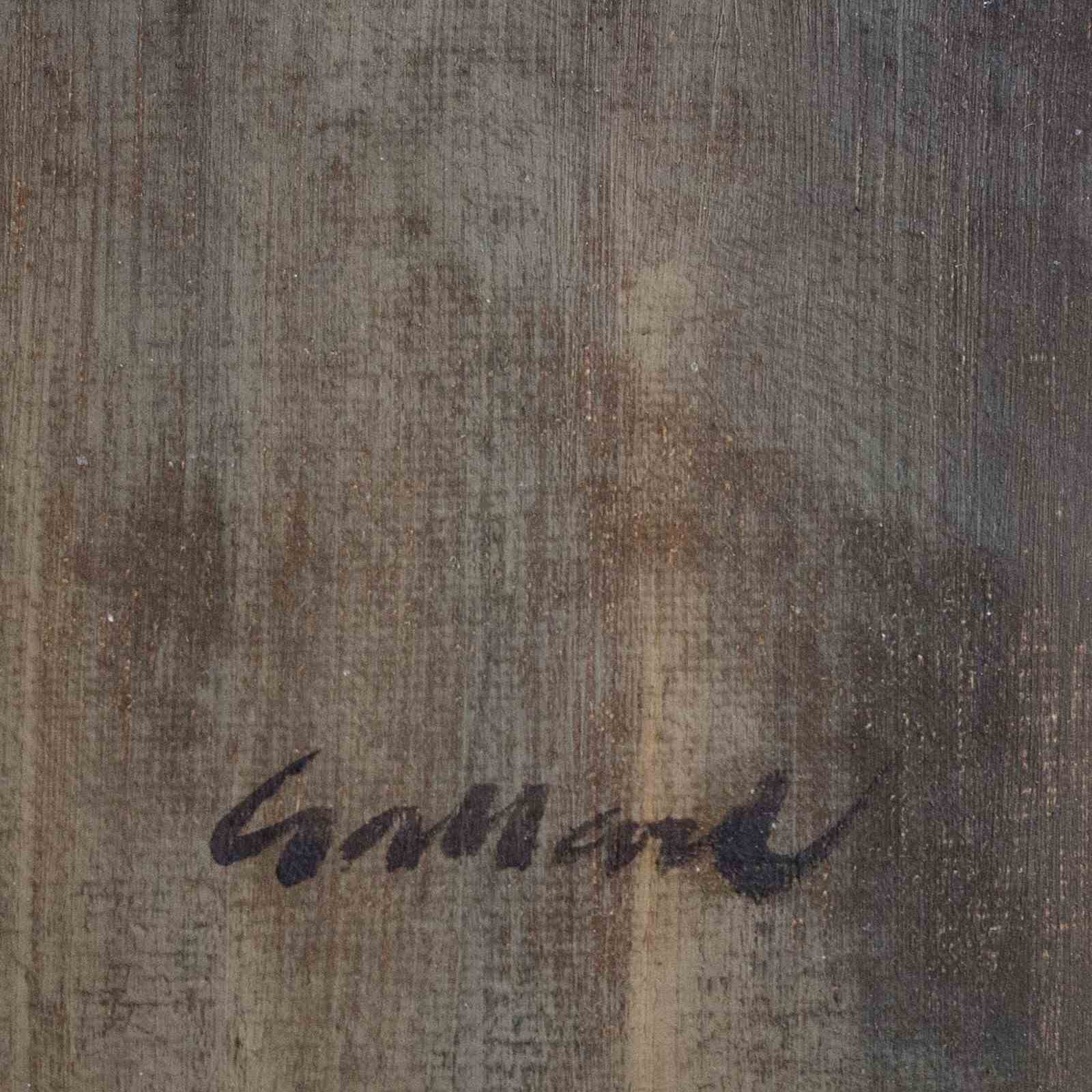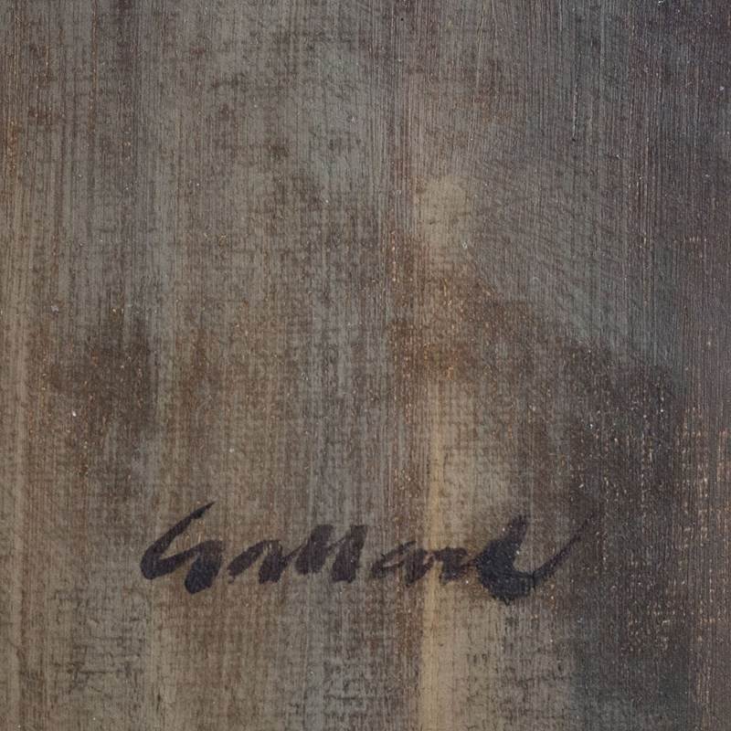 The signature present on the painting has not yet been conclusively identified. The work demonstrates a contemporary realist technique, characterized by careful draftsmanship, soft tonal transitions, and a focus on contemplative figurative subject matter.