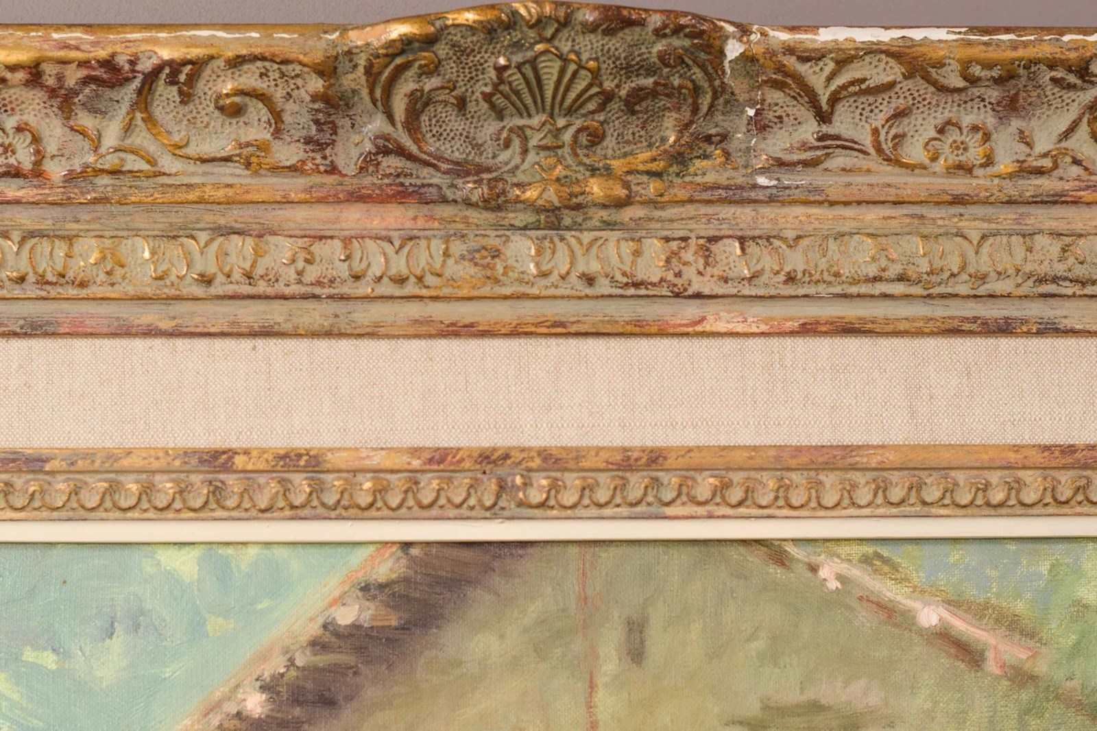Condition: Painting is in good condition. The frame is damaged, please see the pictures