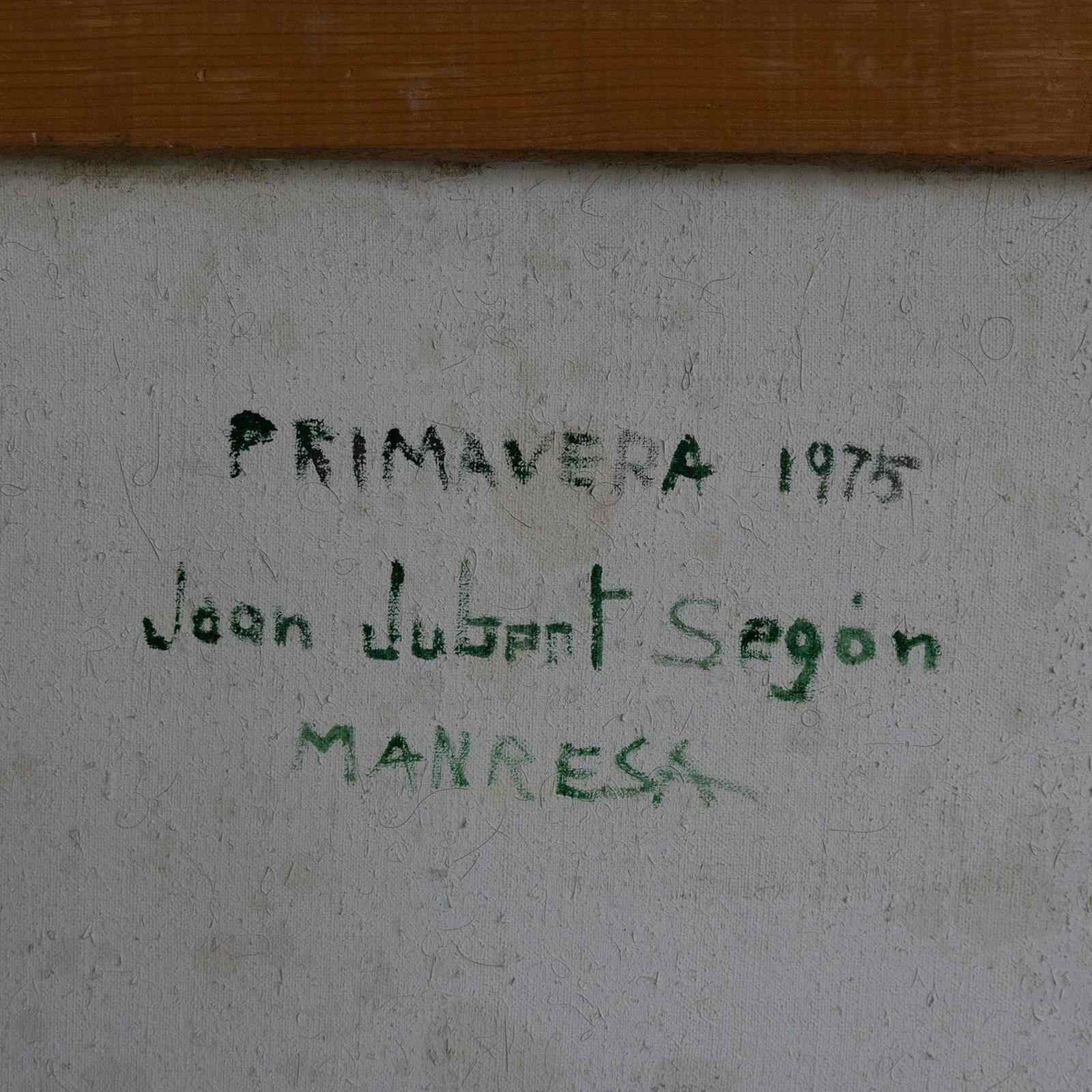 Presented in a molded and gilded wood and stucco frame in very good condition, showing minor age wear. The reverse bears the inscription “Primavera 1975 – Joan Jubert Segon – Manresa.”