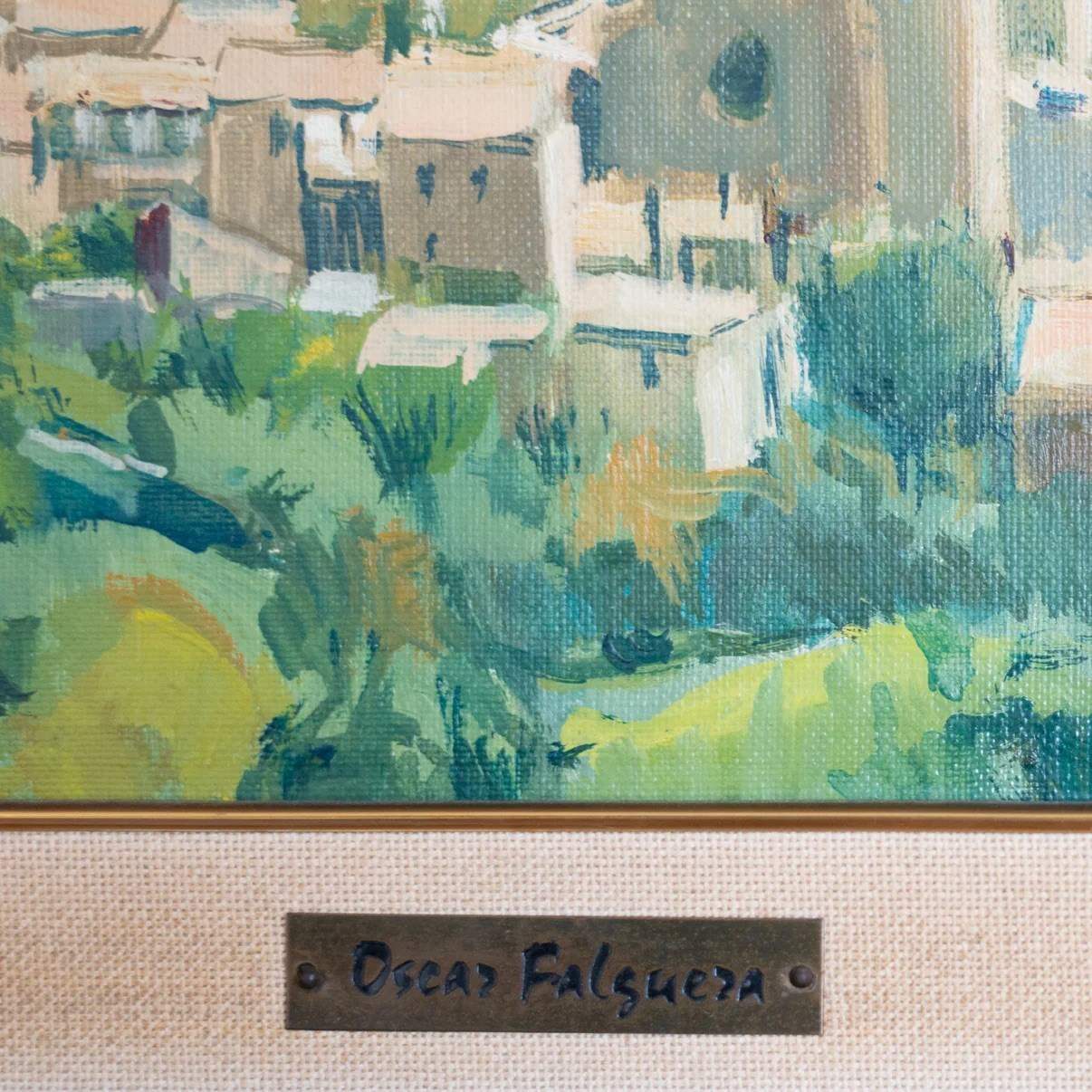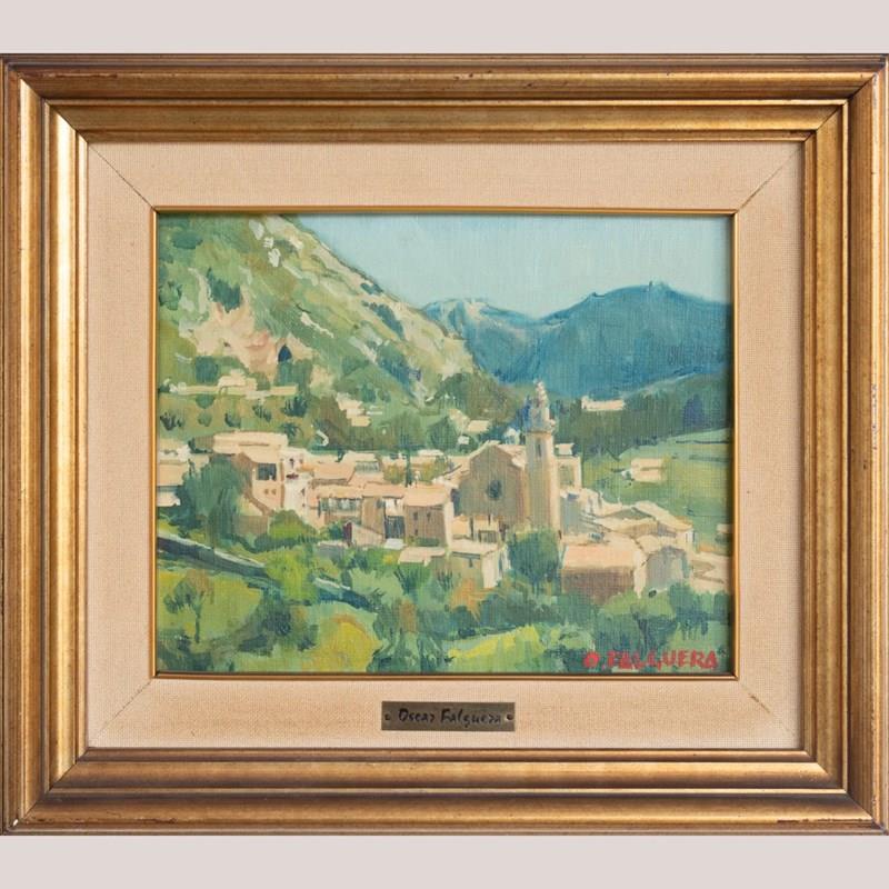 Oscar Falguera (birth year unknown) was a European painter known for structured landscape compositions and regional village scenes.