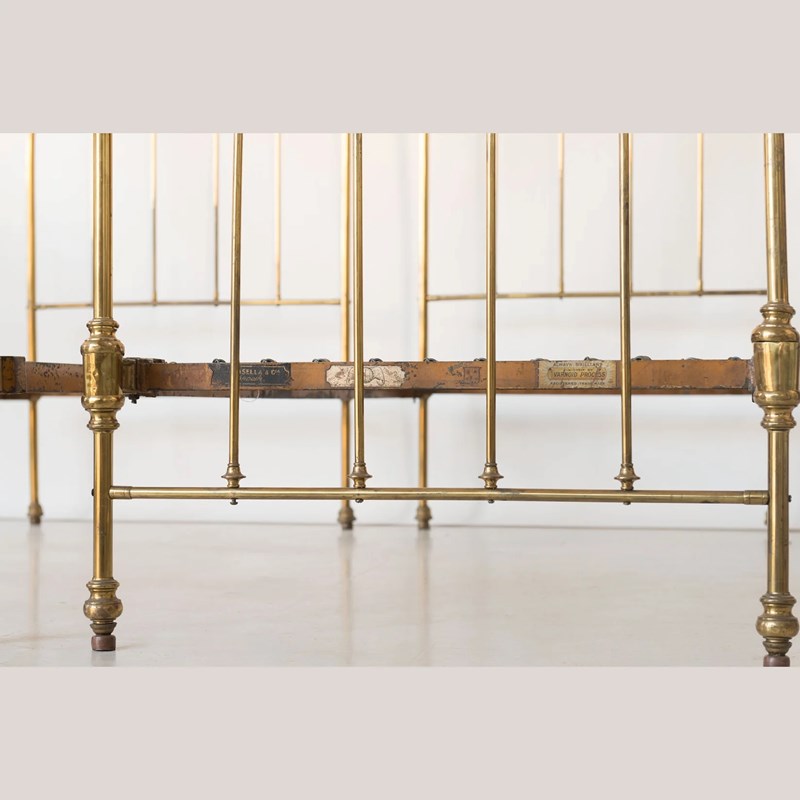 Manufactured during the peak period of British brass bed production, likely by a registered trade workshop using the “Varnoid Process” finishing method. The design reflects industrial-era manufacturing combined with traditional brass metalworking techniques.
