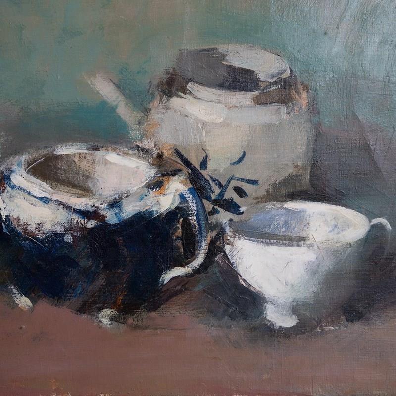 Pair Of Still Life Paintings - Oil Studies Teacups And Pots – Signed And Dated