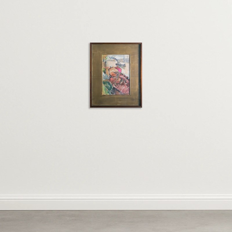 Ortiz Alfau frequently depicted Mediterranean towns, rooftops, ports, and industrial coastal areas. His work is recognised for strong compositional perspective and confident watercolour technique that captures both architectural structure and atmospheric light.