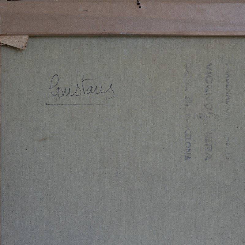 Although the author remains unidentified, the painting’s technique and aesthetic align with mid-20th-century Spanish modernism. The use of saturated color, expressive brushwork, and decorative composition suggests influence from Mediterranean schools that bridged Post-Impressionism and Fauvism. The reverse bears a stamp from Vicenç Fiera, Barcelona, indicating regional provenance.