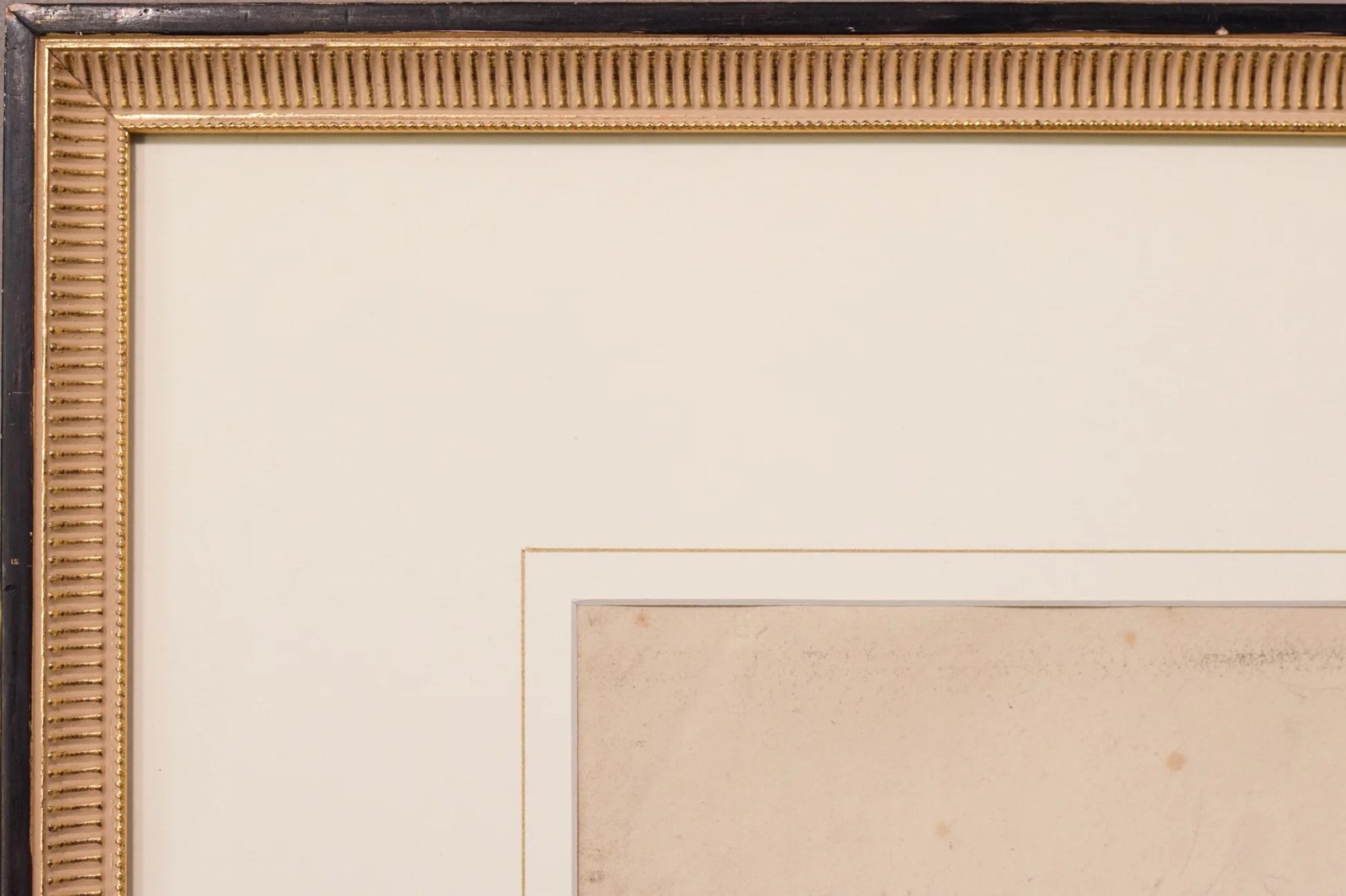 Displayed in a classic gilt frame with refined ribbed moulding and mild age wear, complementing the drawing’s period character.