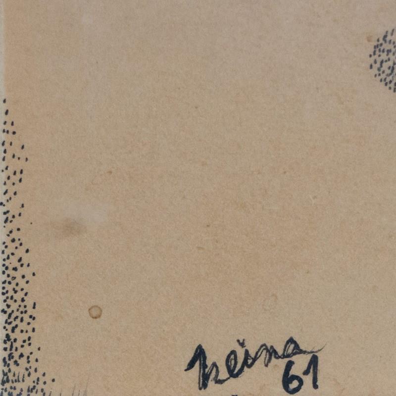 Although the artist remains unidentified, the technical precision and conceptual depth suggest a creator influenced by mid-century European modernist aesthetics. The piece reflects affinities with the geometric surrealism and architectural abstraction prevalent in the 1950s and 1960s, characterized by disciplined linework and symbolic spatial exploration.