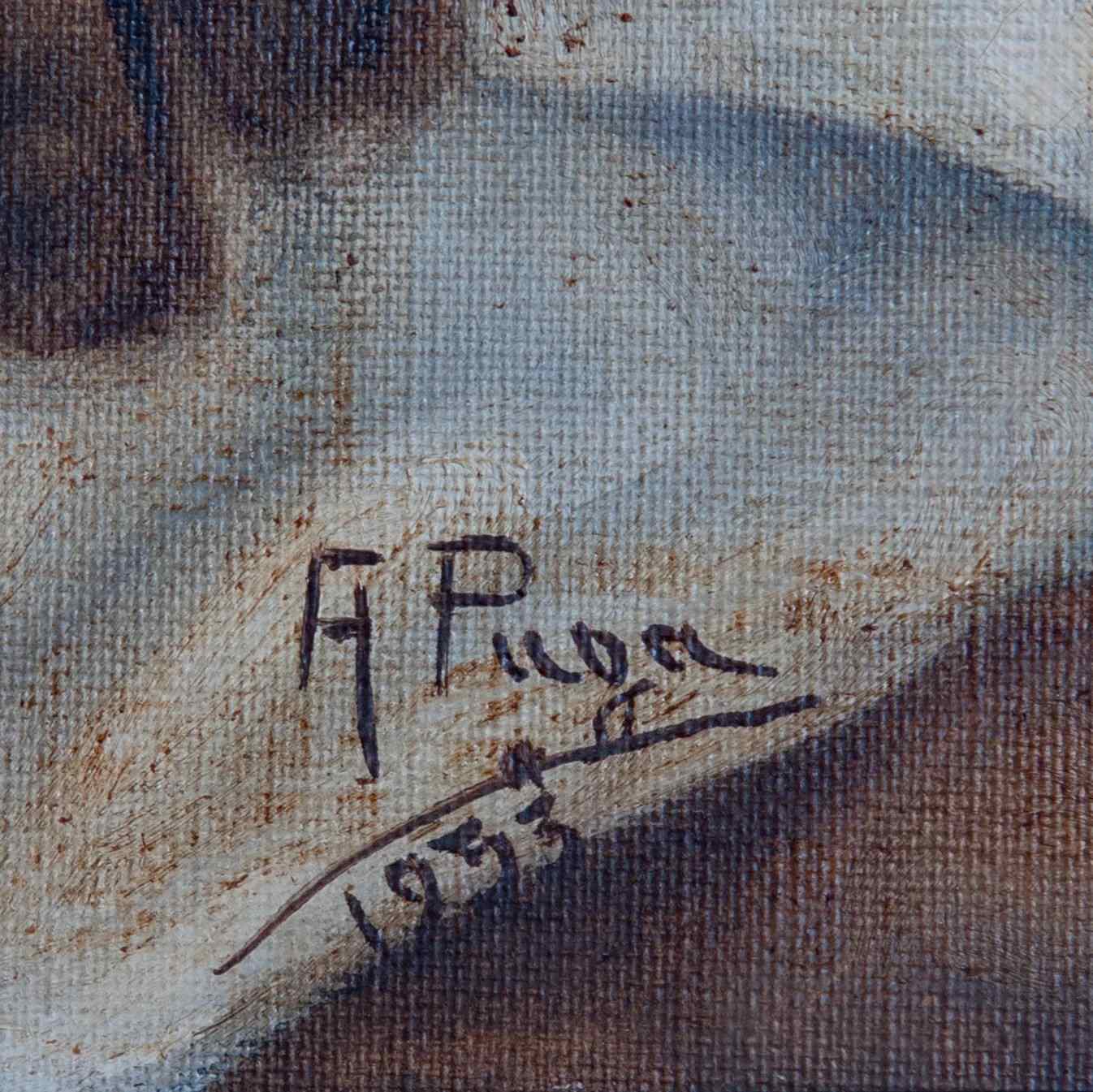 A. Puga (active mid-20th century) is known for finely executed realist paintings and studies marked by tonal precision and quiet emotional intensity.