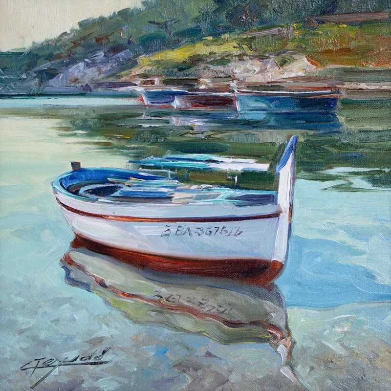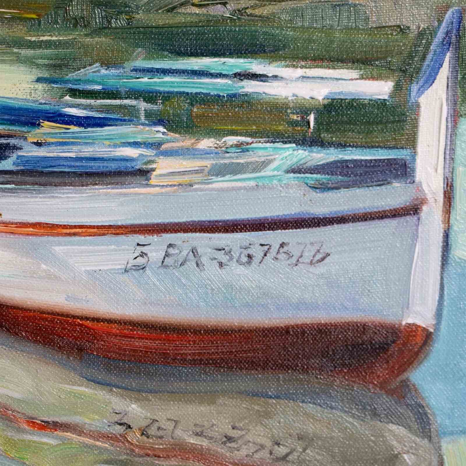 Though the painter’s full identity is unconfirmed, the style aligns with late 20th-century Mediterranean realism. The confident impasto and attention to reflected light suggest influence from Catalan and Valencian coastal schools, where painters emphasized atmosphere, color harmony, and the natural luminosity of sea and sky.