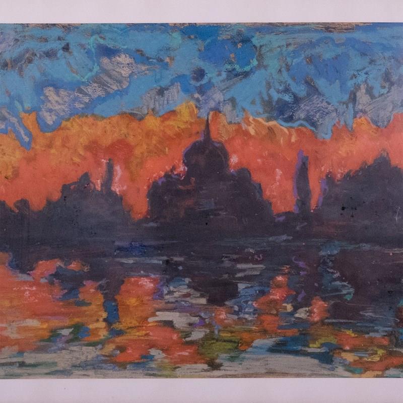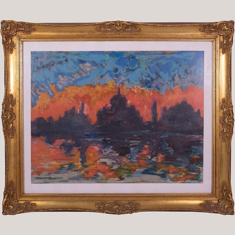 Although the author remains unidentified, this work exemplifies the late Impressionist fascination with luminous color and atmospheric vibration. Its palette and brushwork recall Monet’s Venetian studies and the expressive chromaticism of Post-Impressionist masters, revealing a painter deeply attuned to light and emotional nuance.