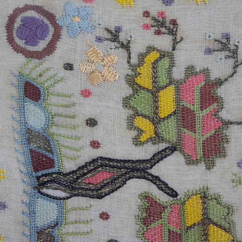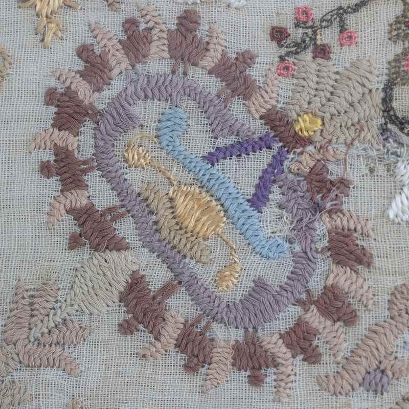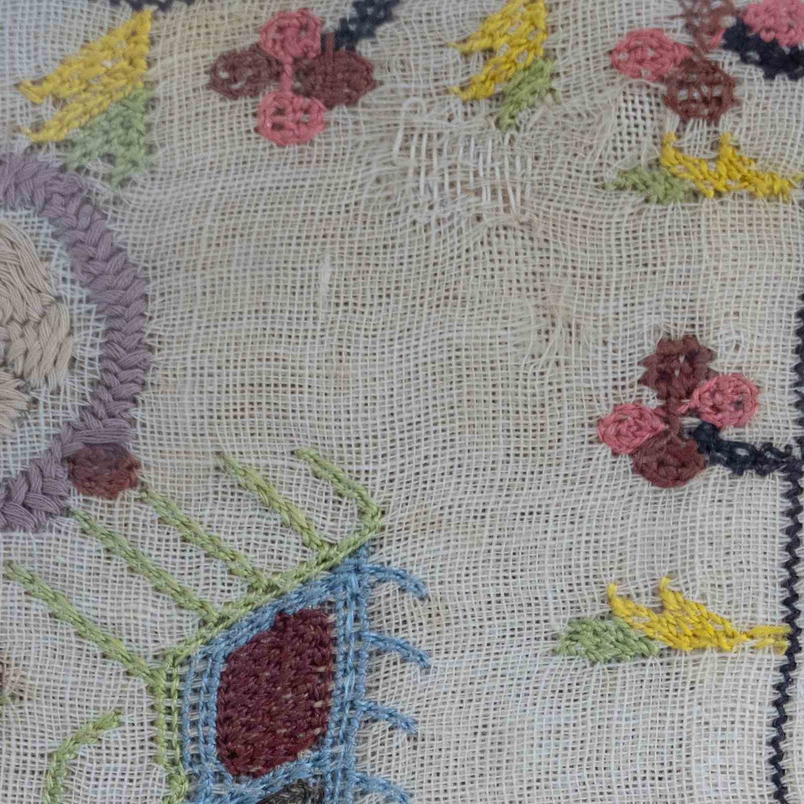 Vintage Embroidered Sampler – Hand-Stitched Floral Textile