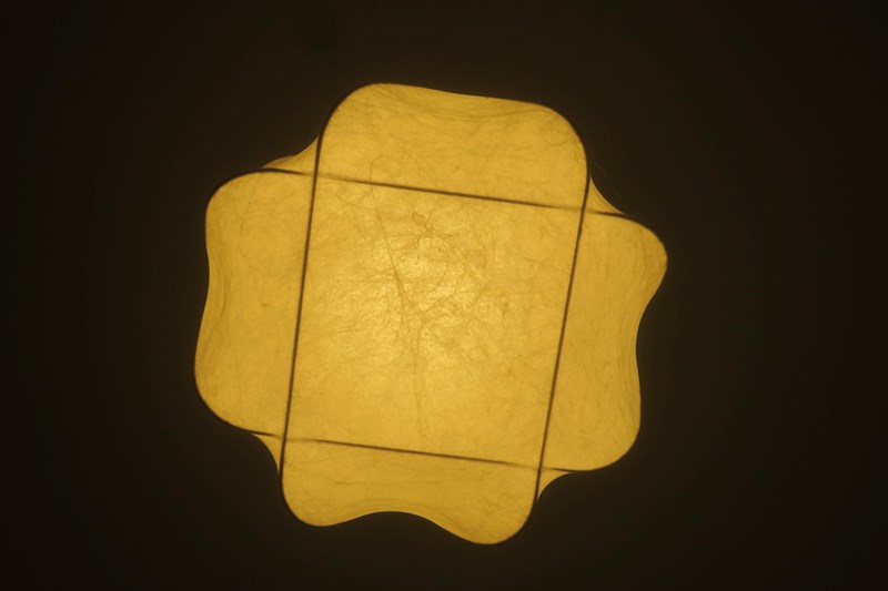 Cocoon pendant light, design similar to lighting by Achille Castiglioni, Italy 1960s, made of resin stretched over a metal frame.