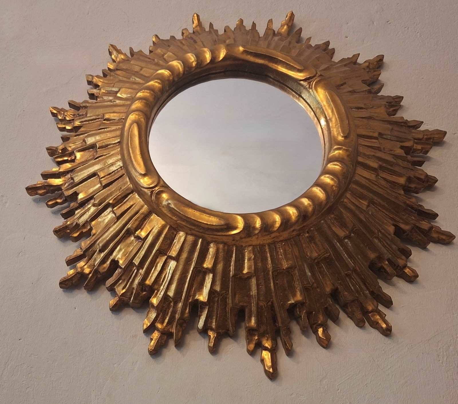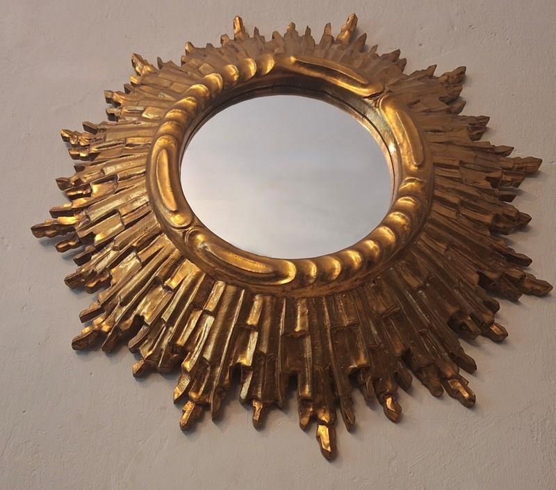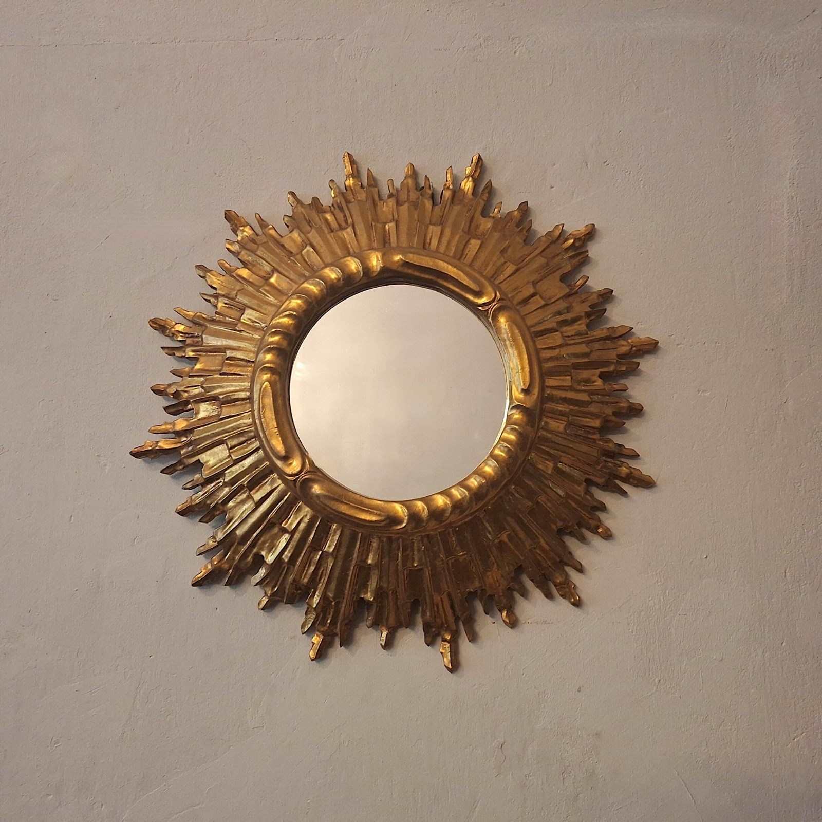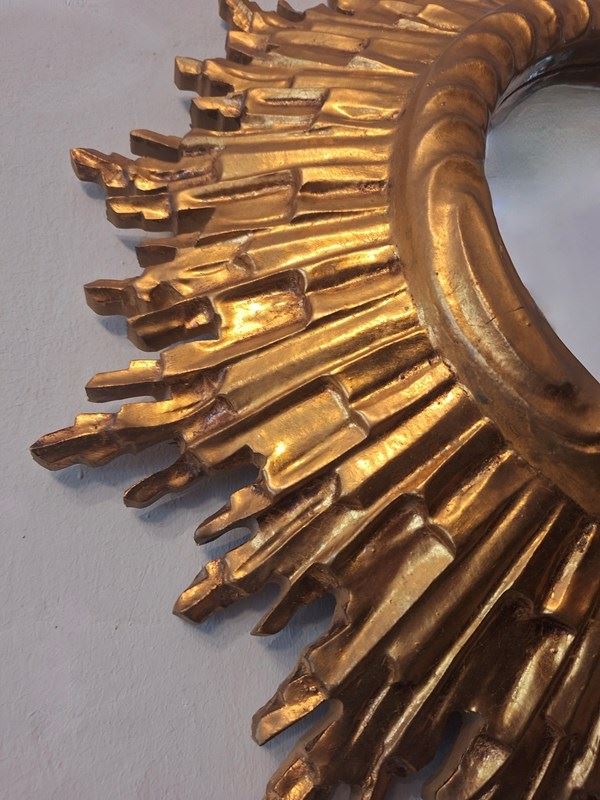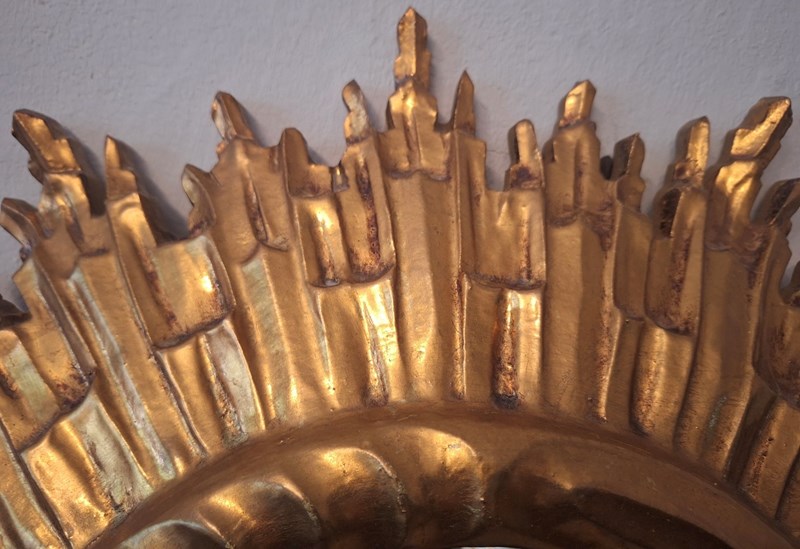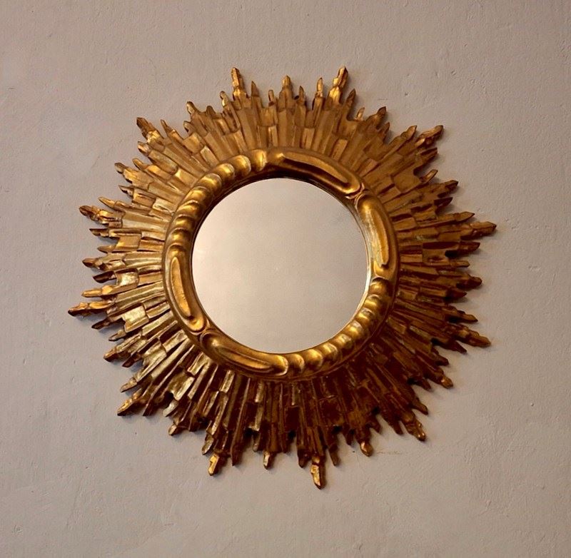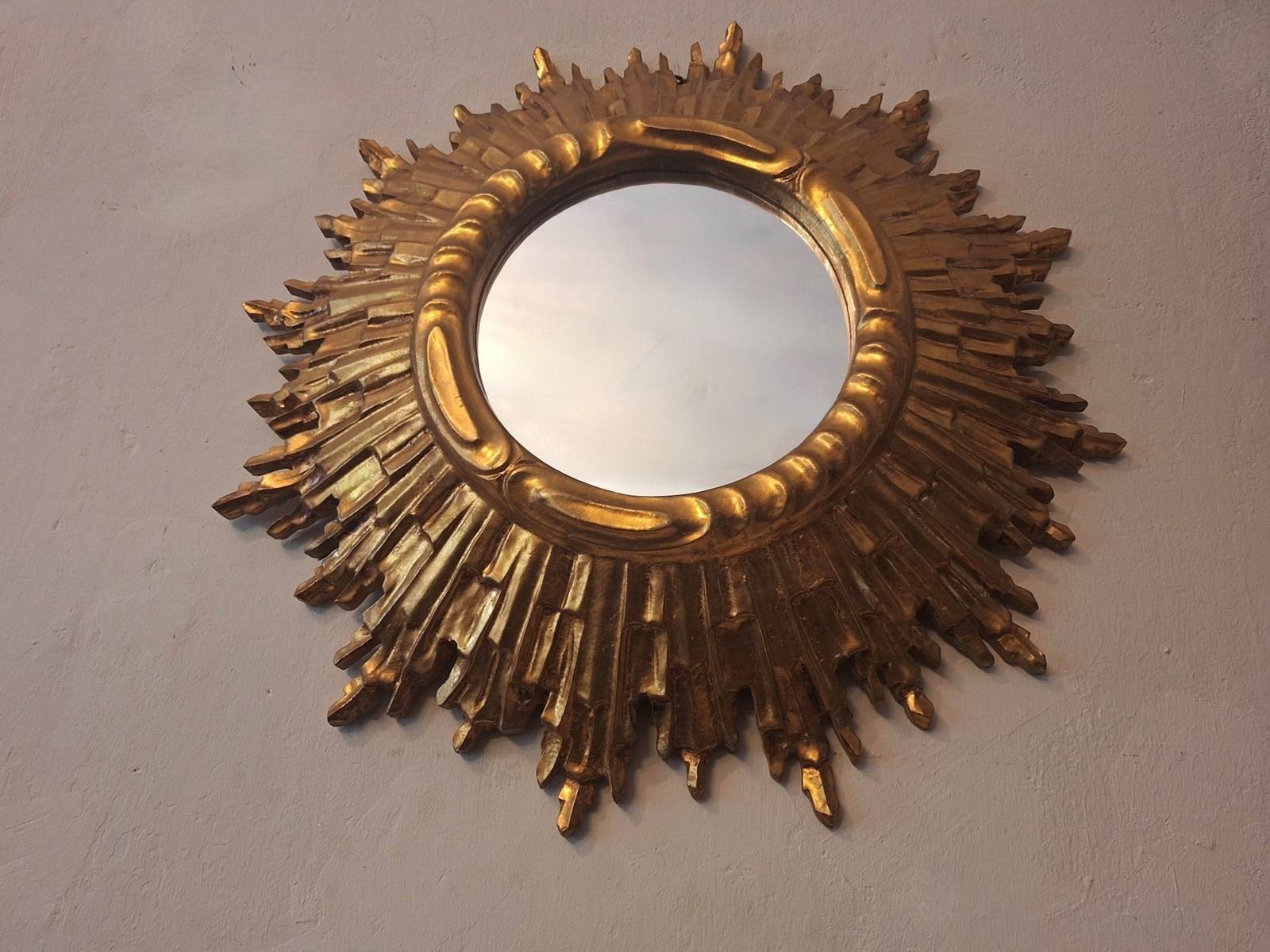 Mid Century French Gilt Sunburst Wall Mirror 62 Cm, 1960S