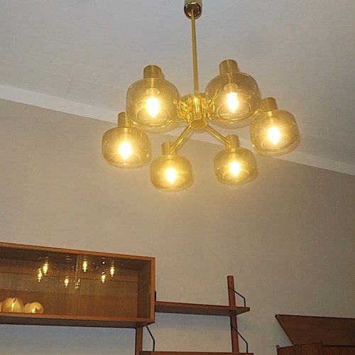 Stilkronen Gilt Brass And Crystal Chandelier 1970