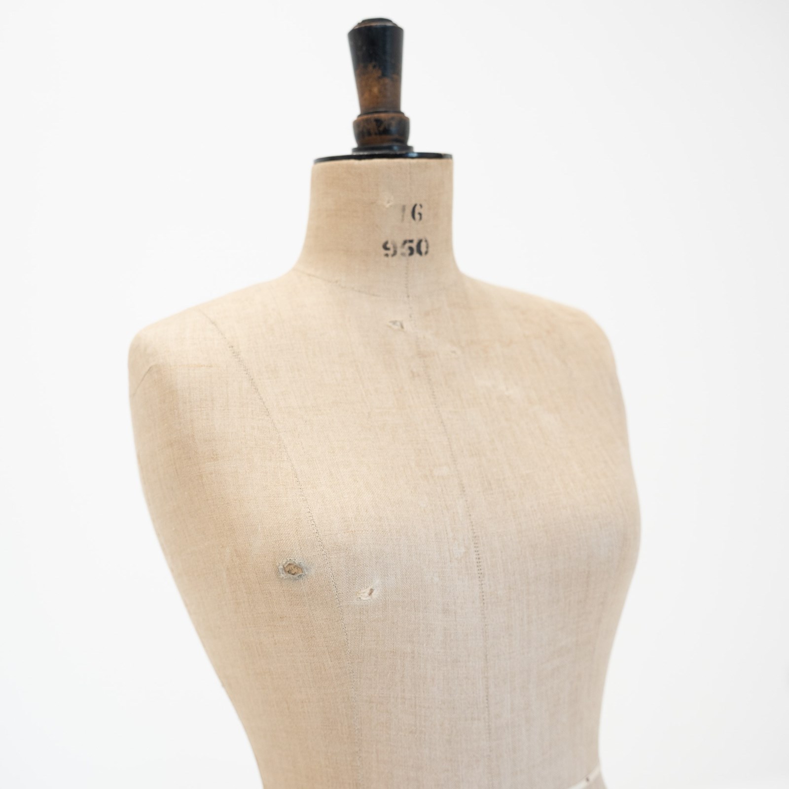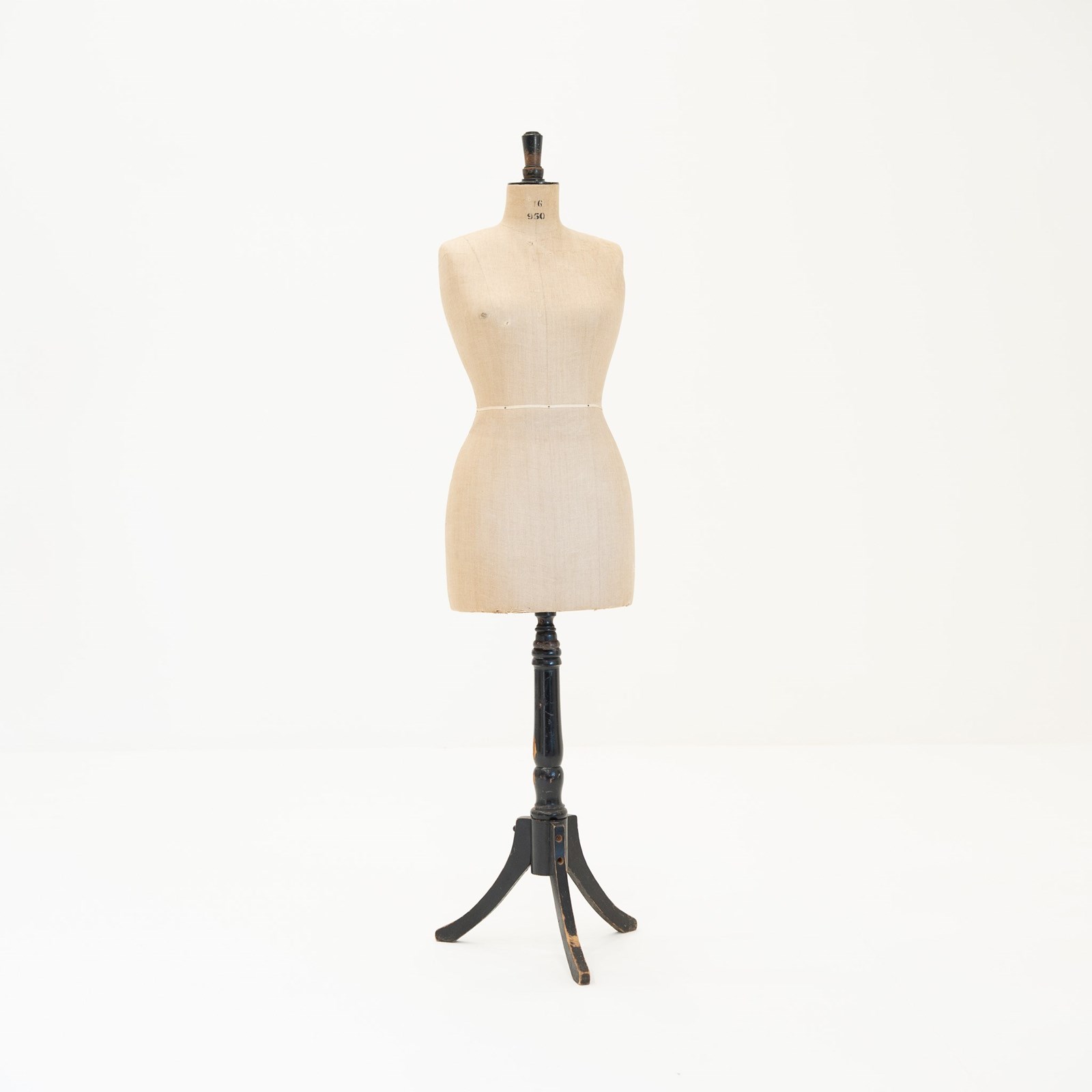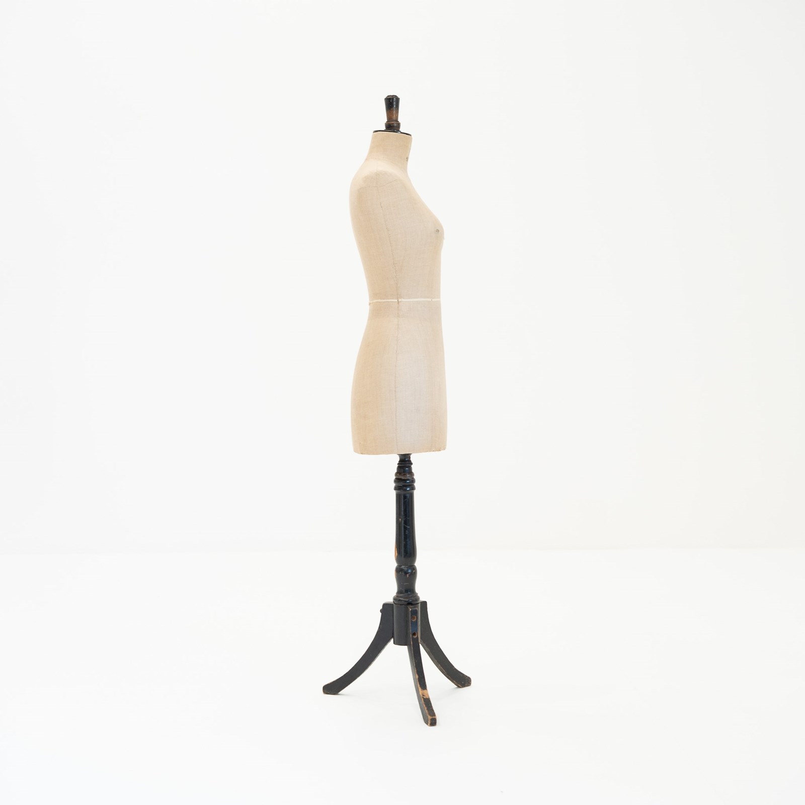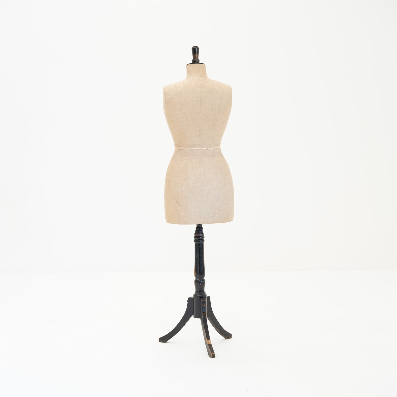 Early 20th Century tailor's or dressmaker's mannequin with wooden ebonised base.