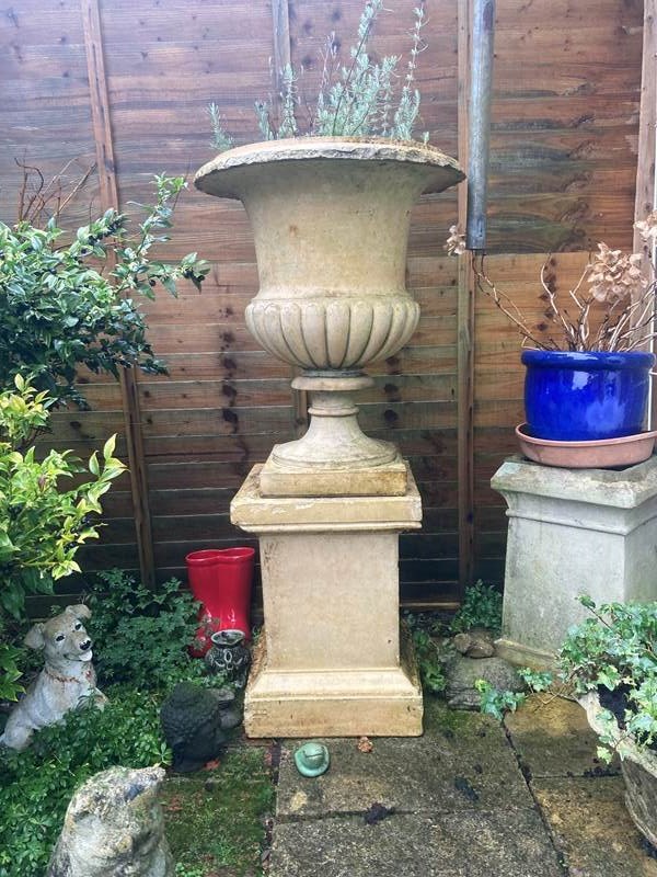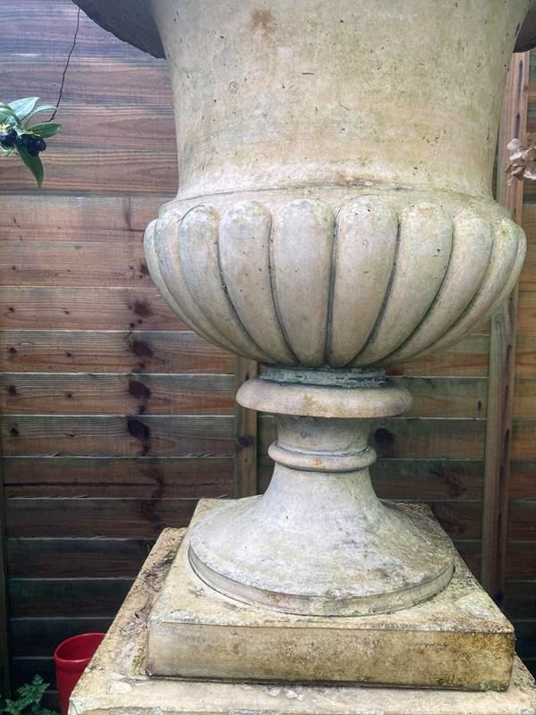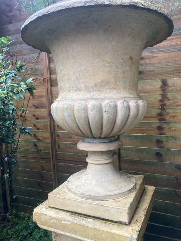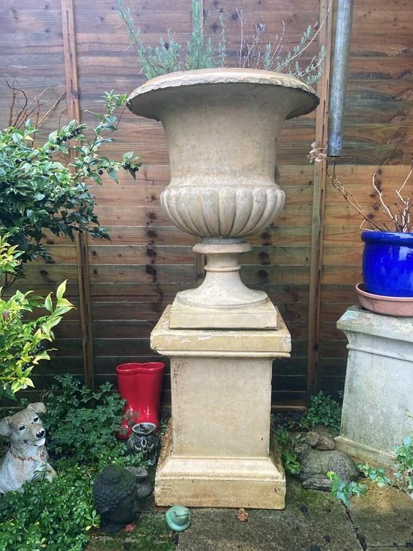 Very elegant classical campana form in the most glorious pale buff terracotta.