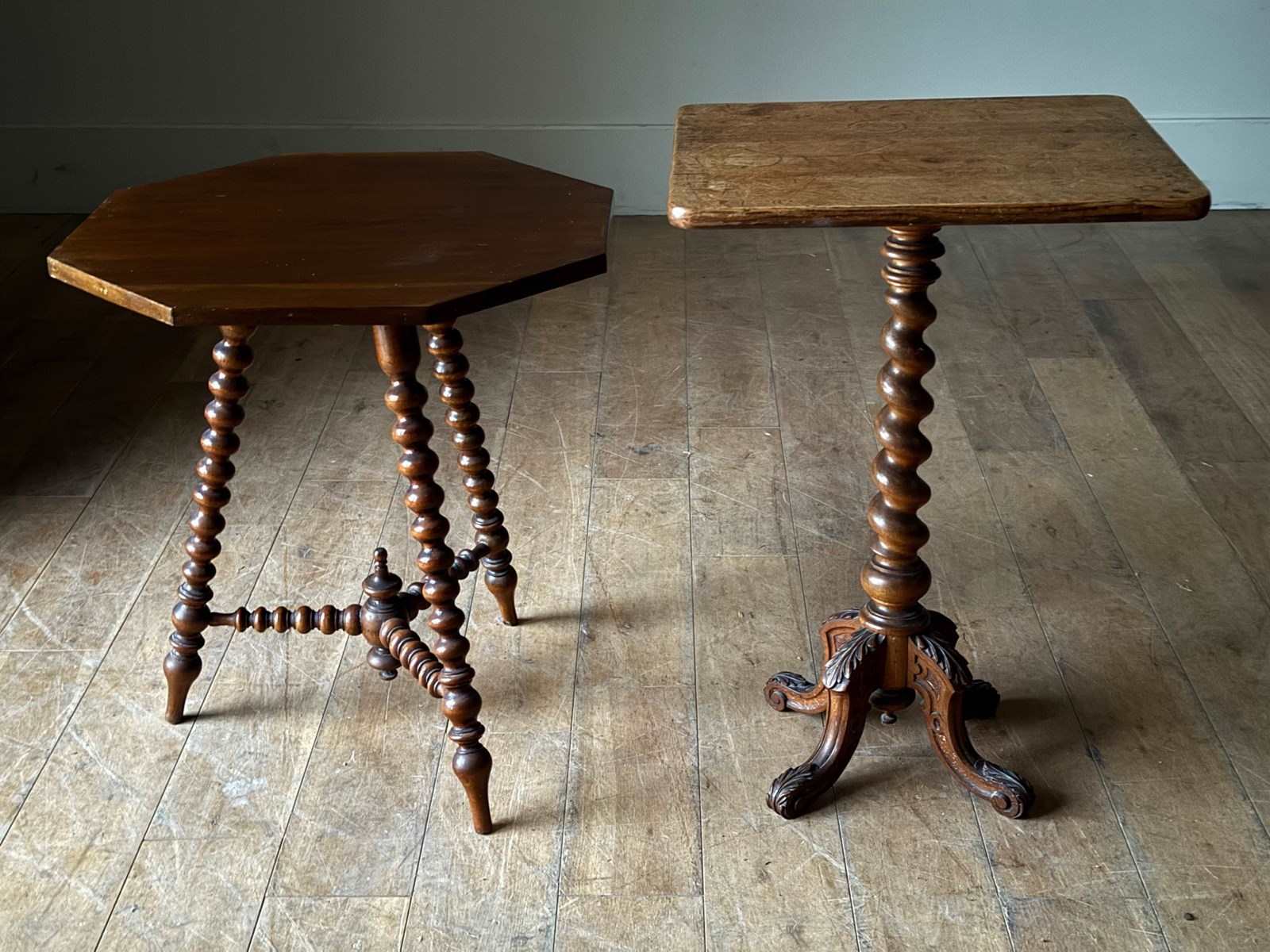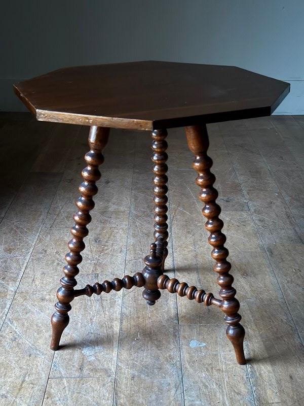 The Hexagonal Walnut Bobbin table Height 62cms, width 60cms & depth 56cms.
