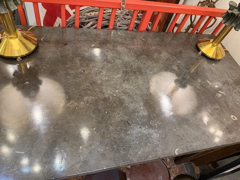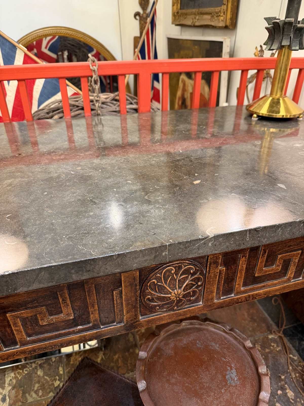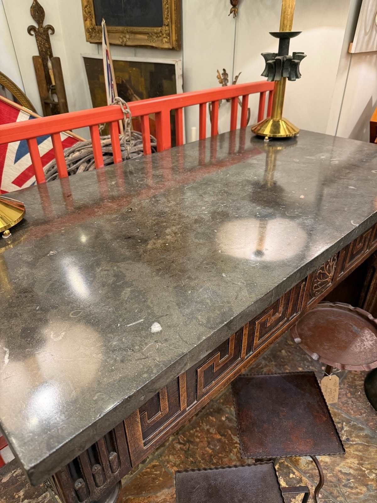 C1770 A Stylish French Walnut Greek Key Console Table / Fossil Marble Top.
