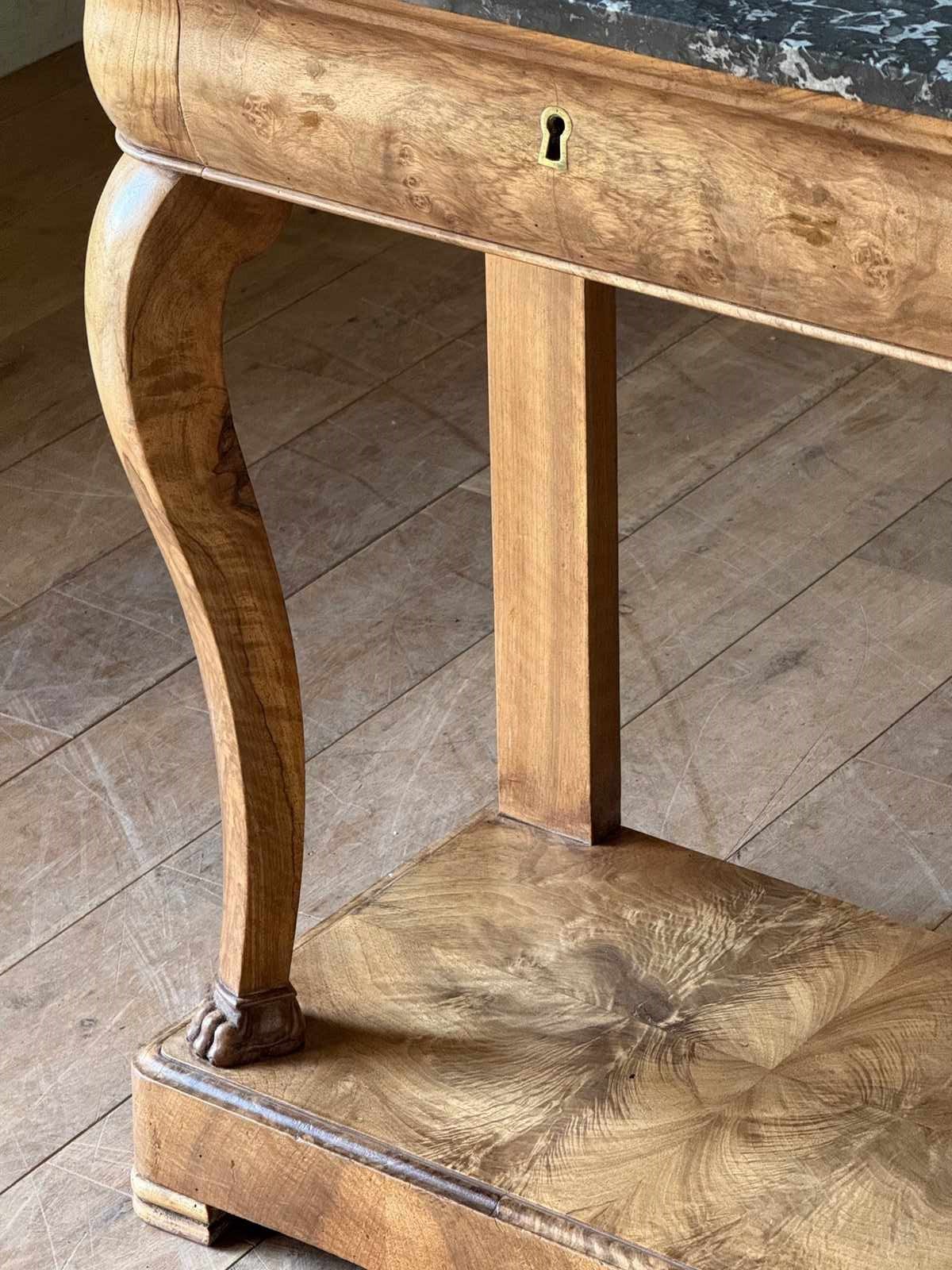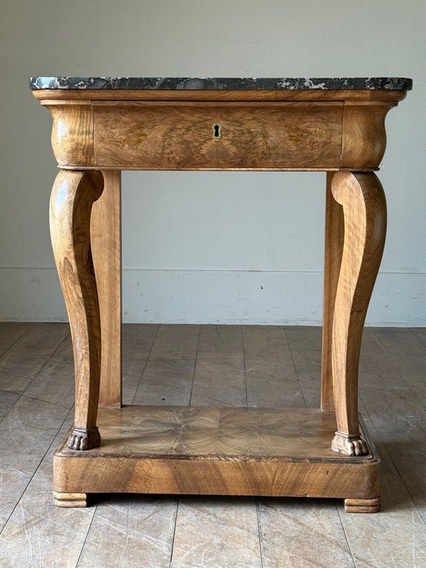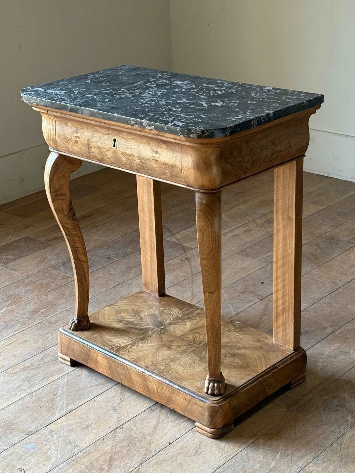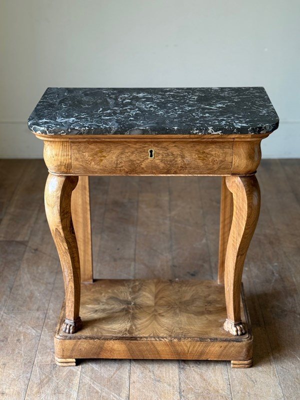 C1830 A Petite French Walnut Console Table with Marble Top.