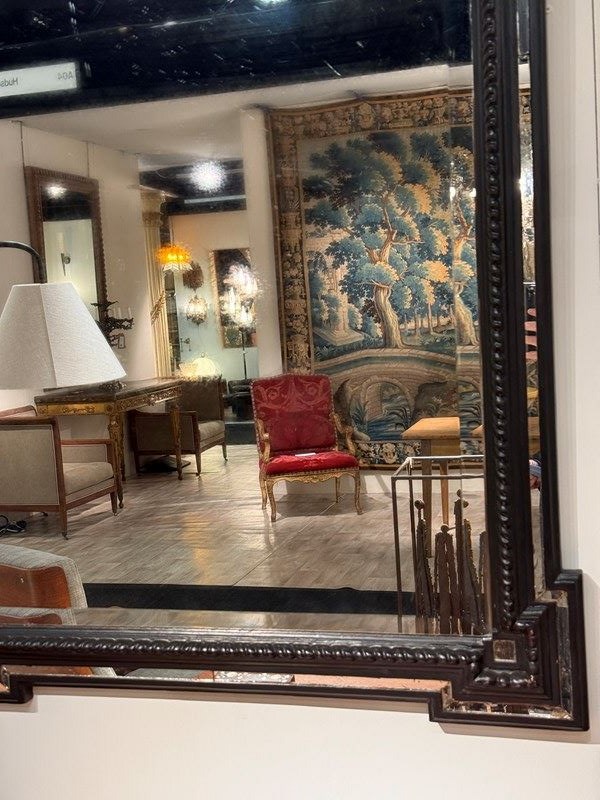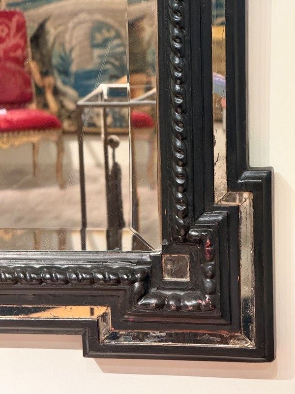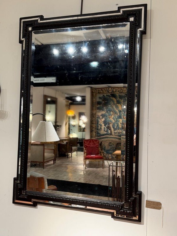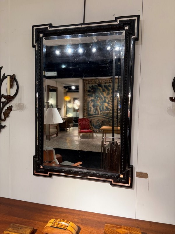 C1840 A French Ebonised Cushion Mirror