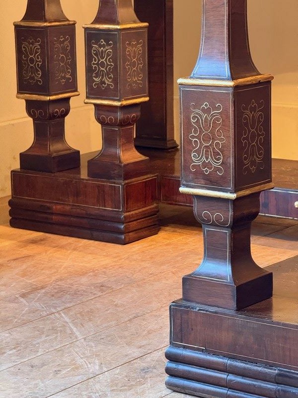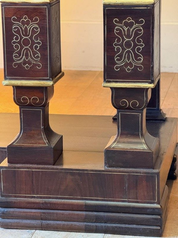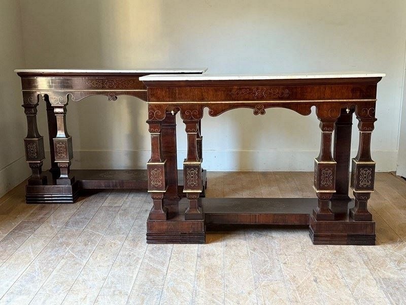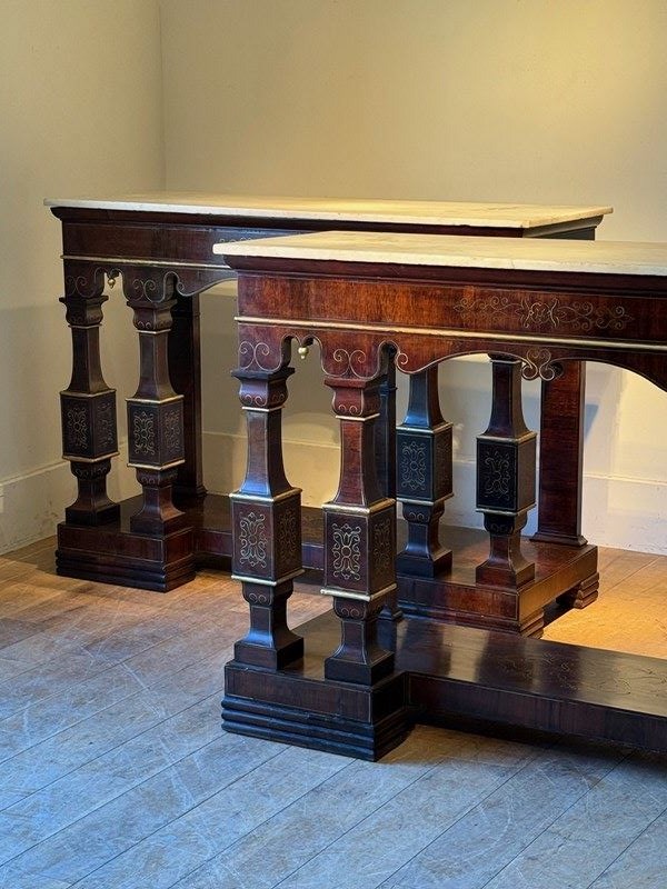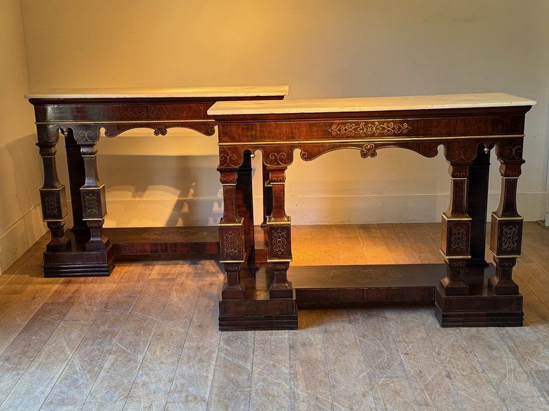 C1870 A Pair Of Italian Brass Inlaid Rosewood Console Tables