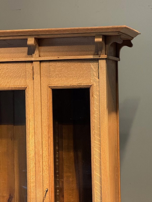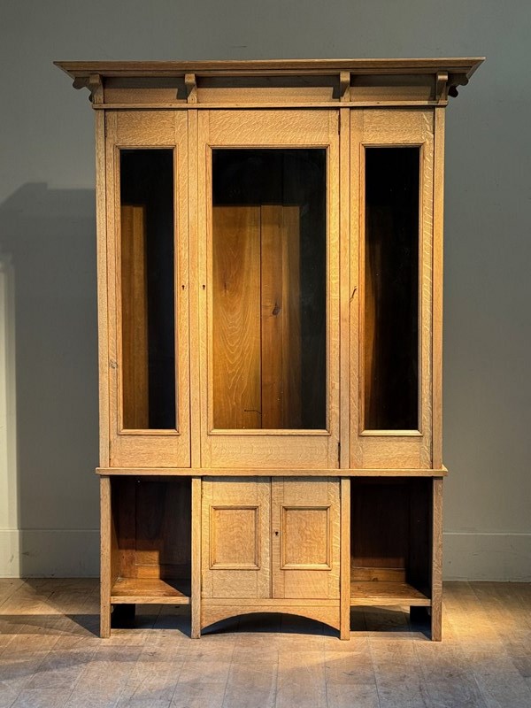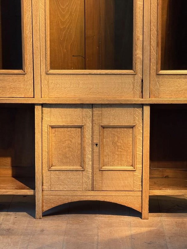C1870 An English Arts & Crafts Period 3 Door Oak Bookcase  - with multiple adjustable shelves.