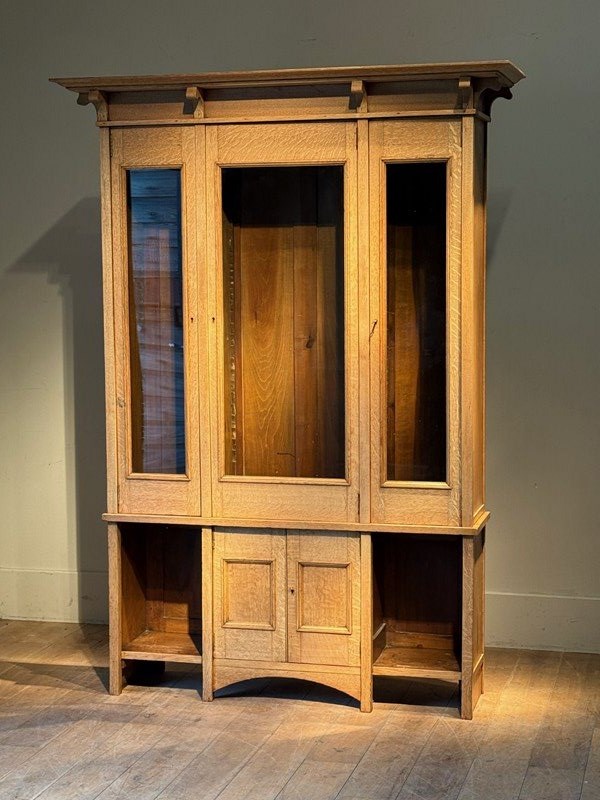 C1870 An English Arts & Crafts Period 3 Door Oak Bookcase