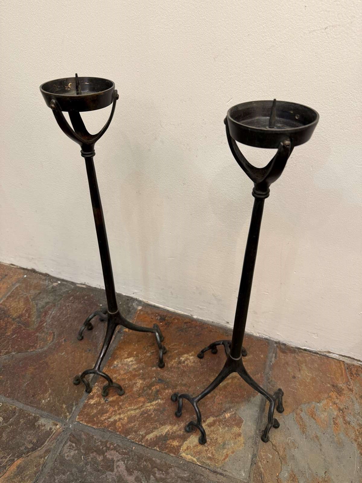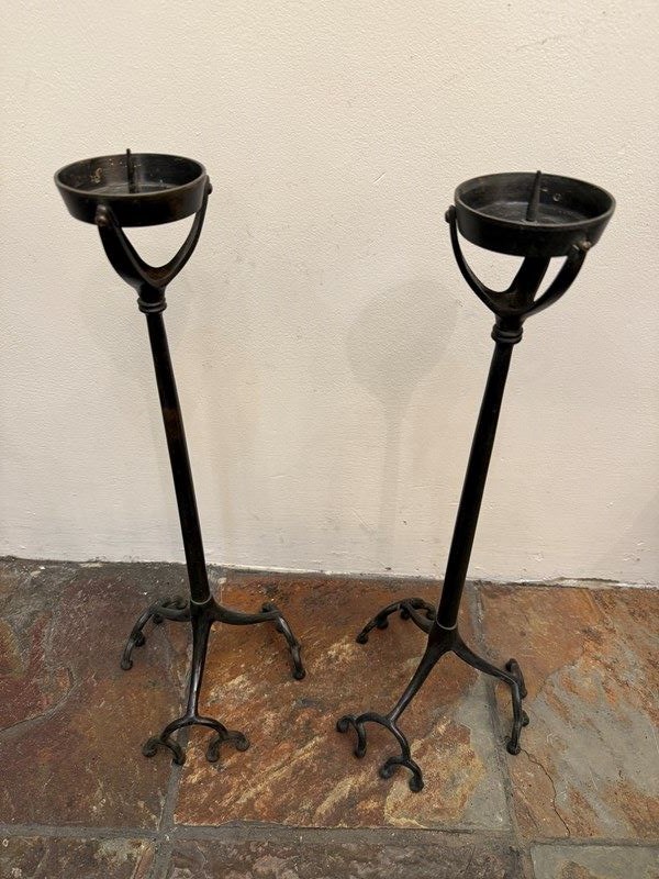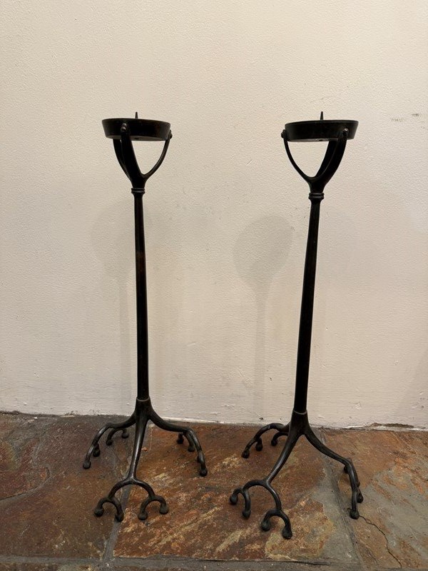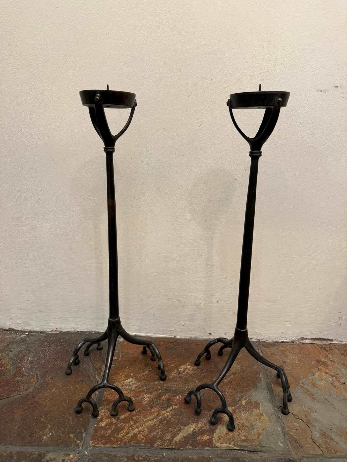 C1890 A Pair of Bronze "Root" Candlesticks