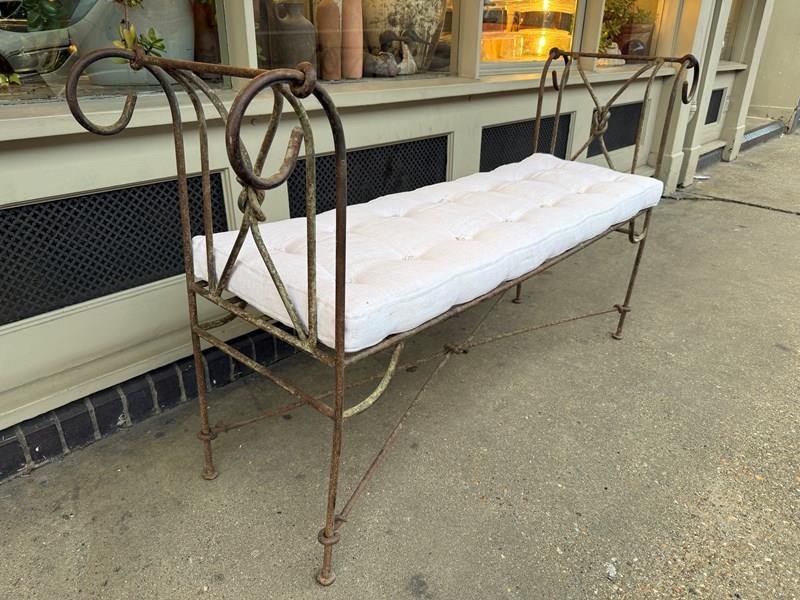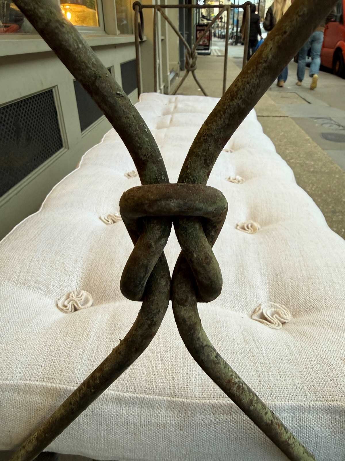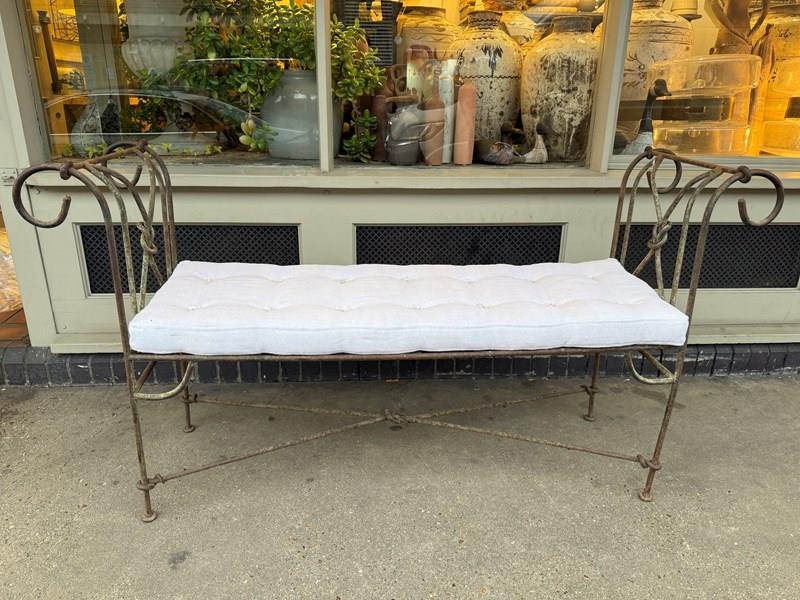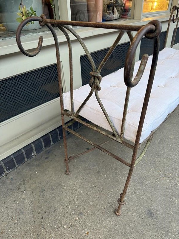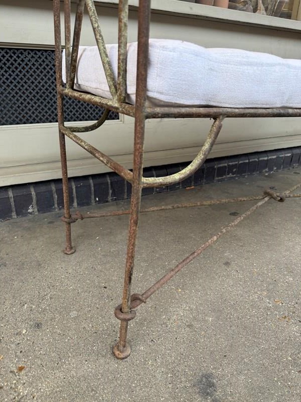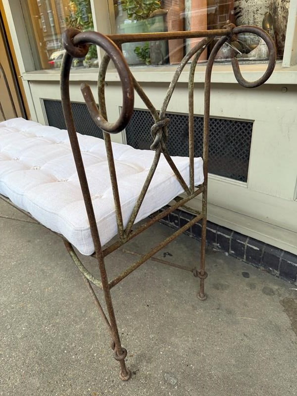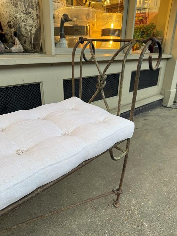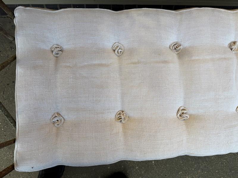 C1890 A Wonderful French Iron Stool / Bench - Great Patina! - Upholstrered in Antique Linen for home or garden!