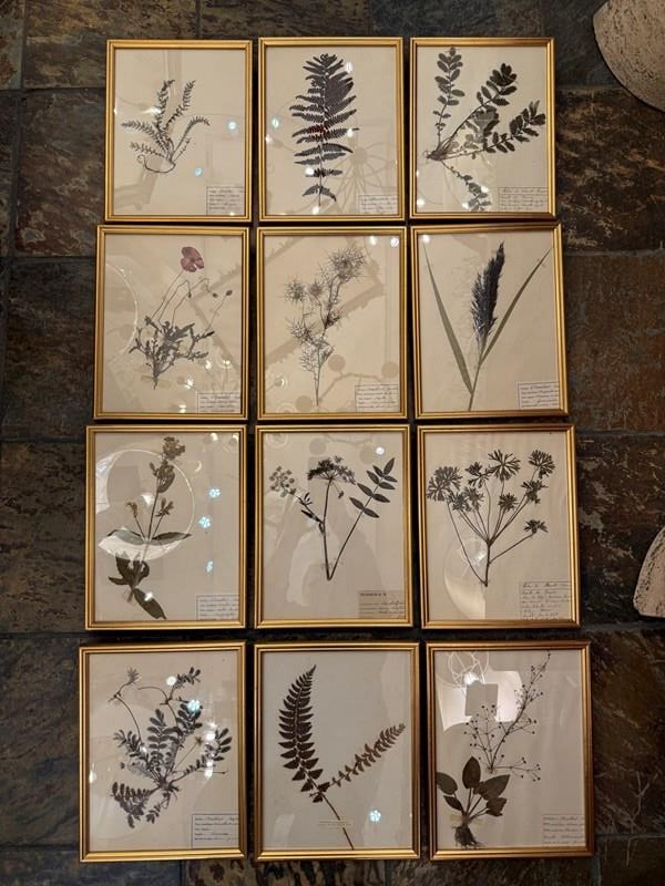 C1890 An Elegant Set of 12 Framed Herbariums - each is labelled with the plants latin name & species.