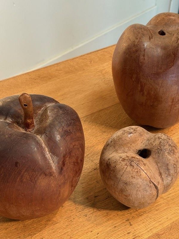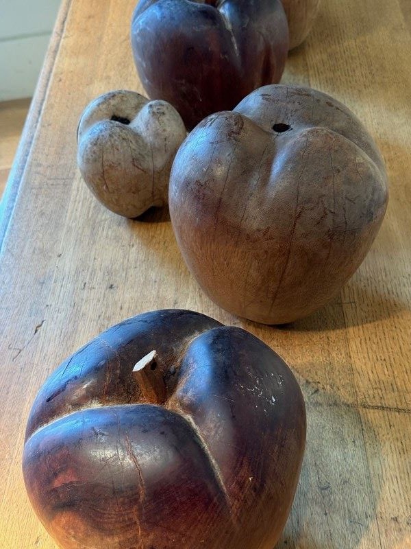 C1920 A Collection of French Hardwood Carved Melons. largest - height 24cms & diameter 20cms Smallest - height14cms & diameter 14.5cms