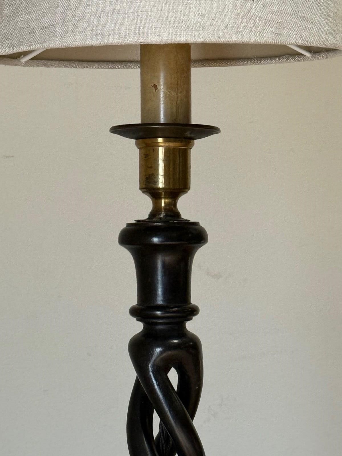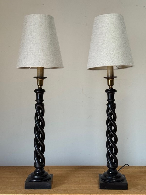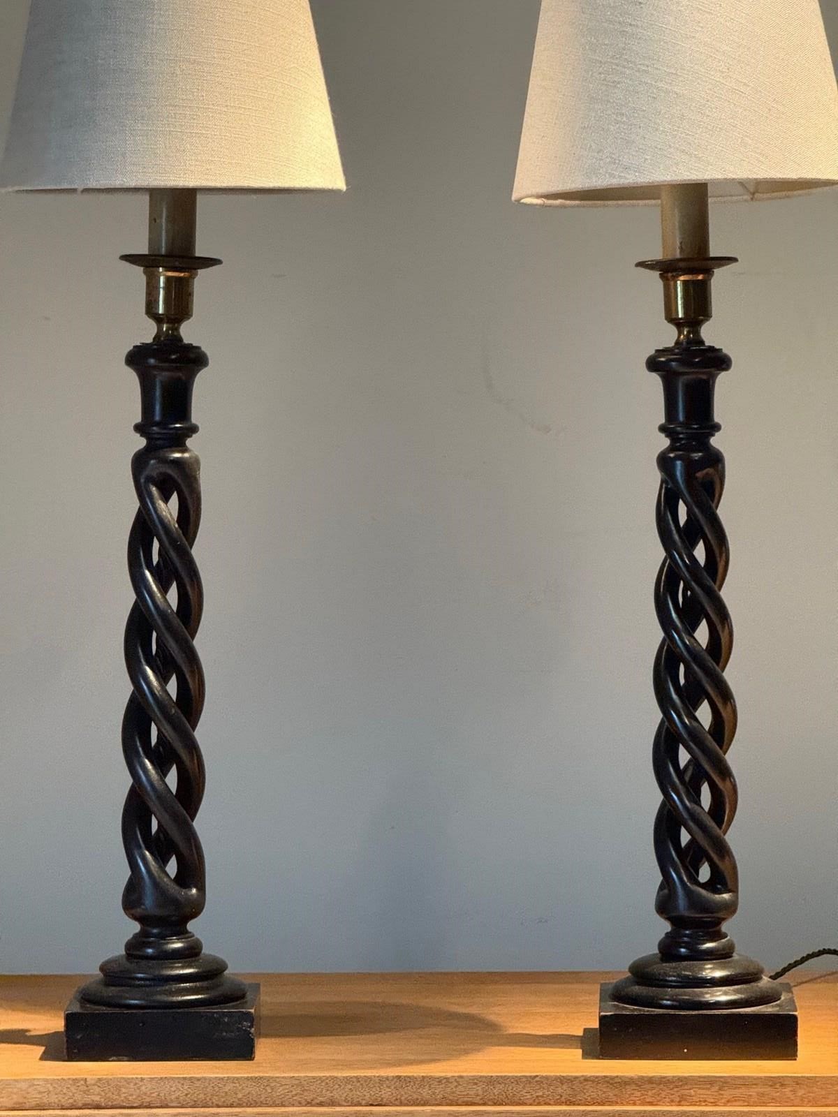 C1920 An Elegant Pair of French Ebonised Twisted Table Lamps