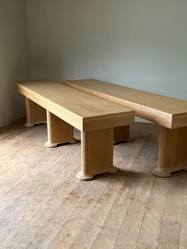 C1930 A Fine Pair Of English Art Deco Oak Consoles / Serving Tables