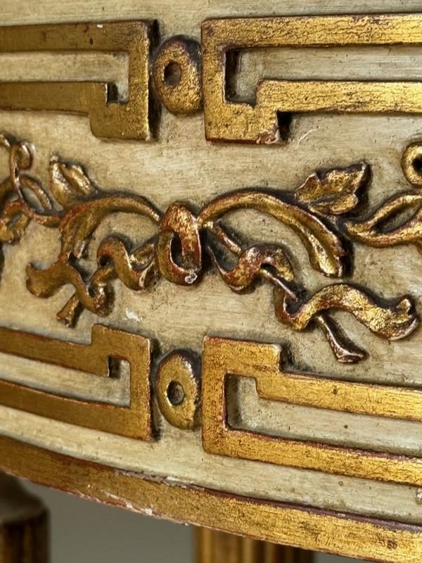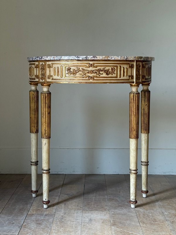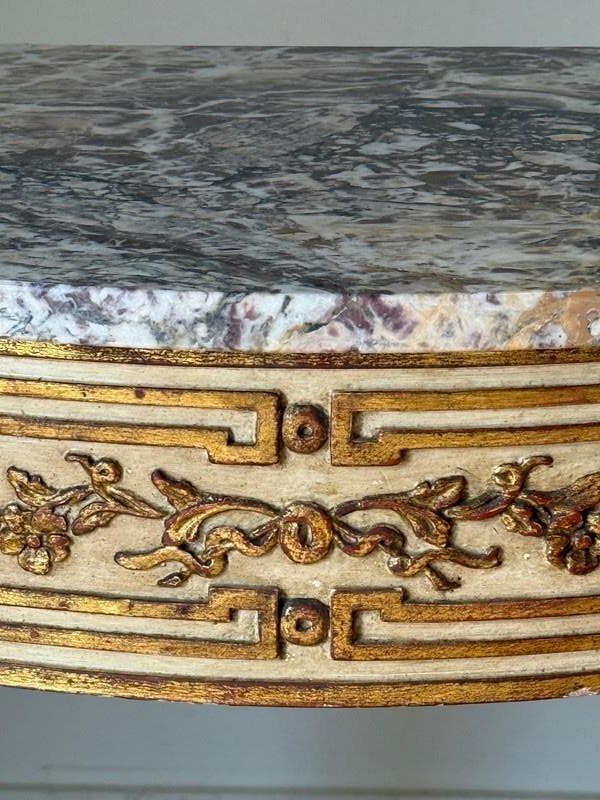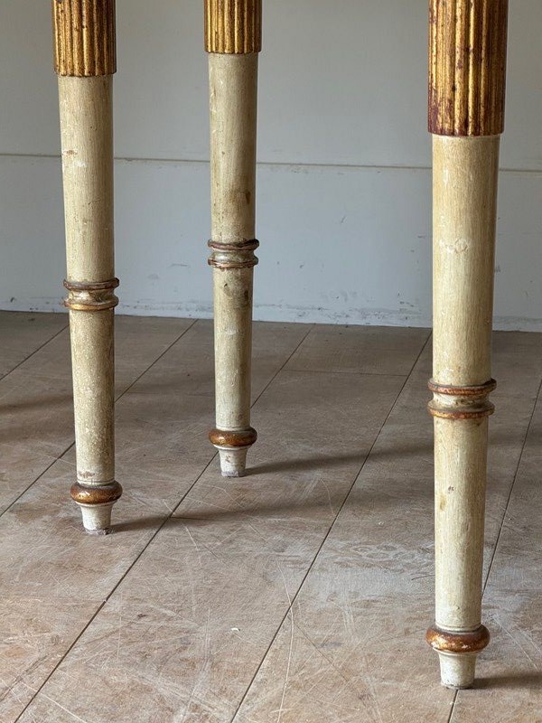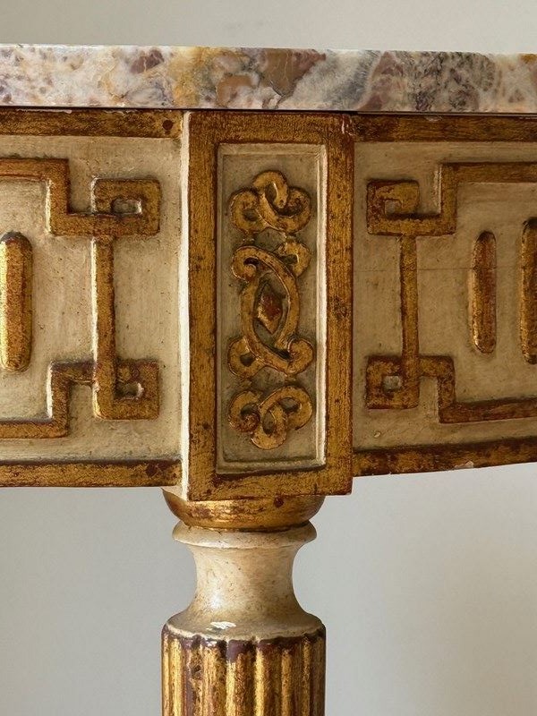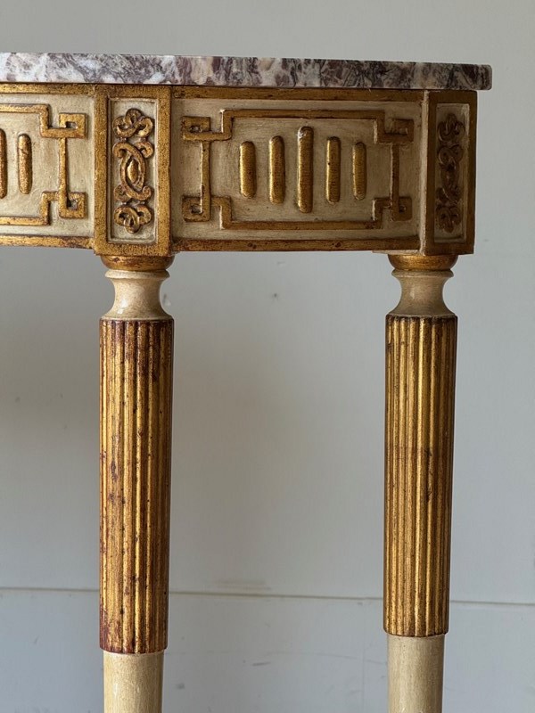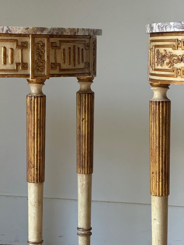 C1930 A Pair of Painted Portuguese Consoles in 18th Century Style - with their original paint & gilding & marble tops!