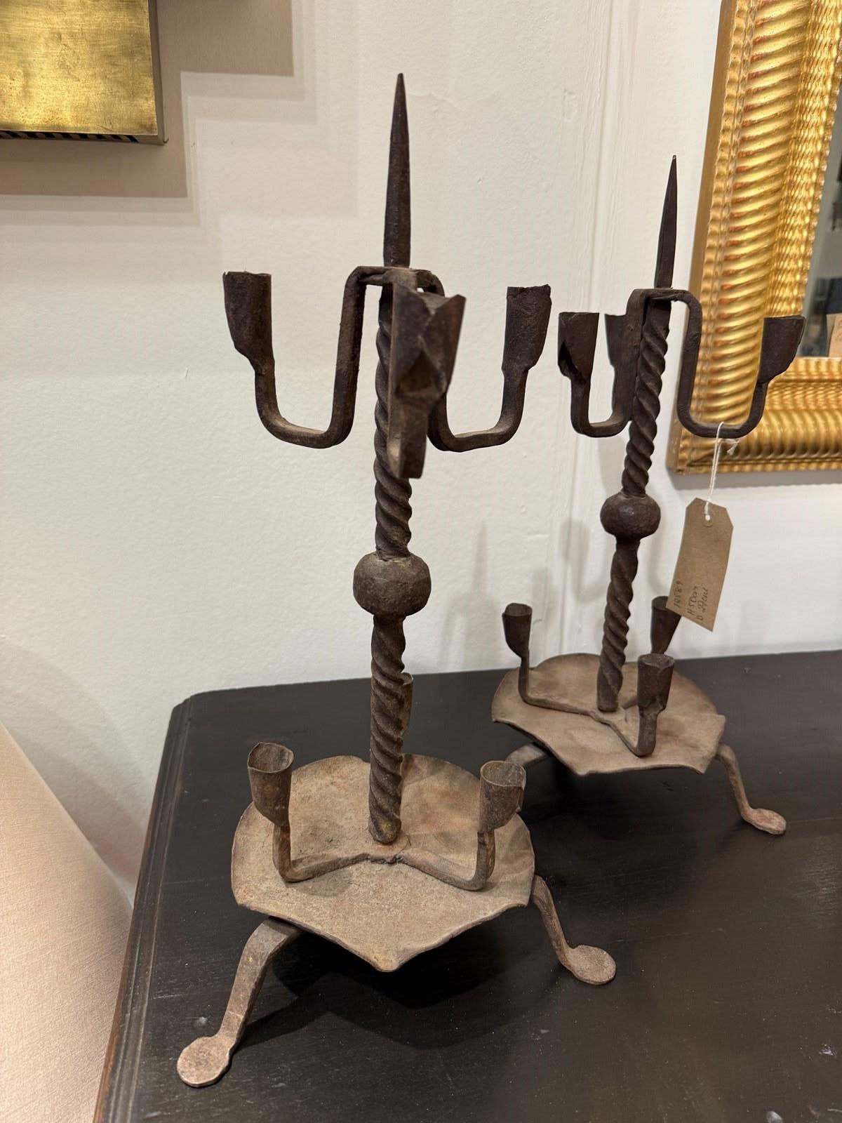 C1930 A Quirky Pair of French Wrought Iron Candelabra