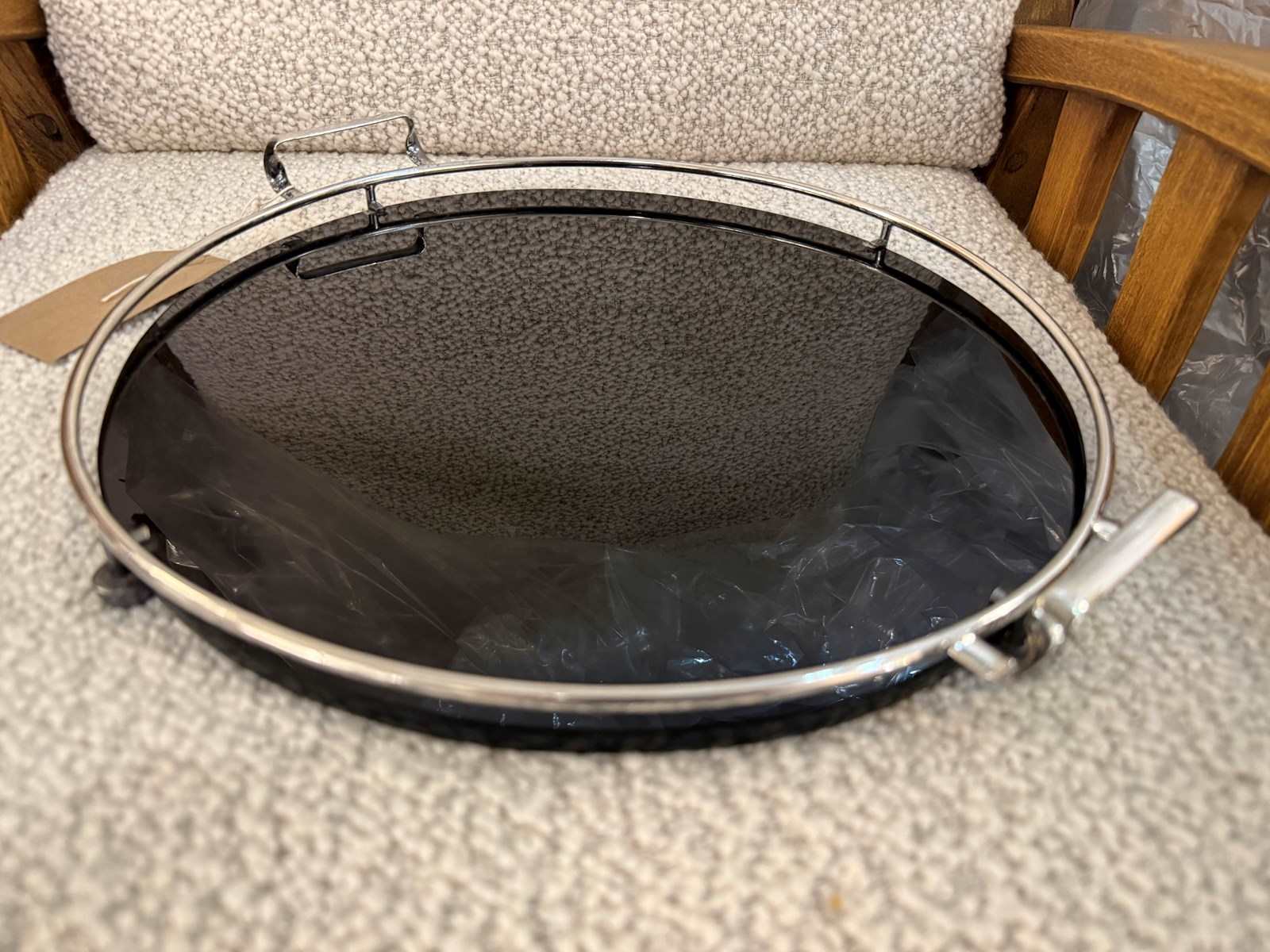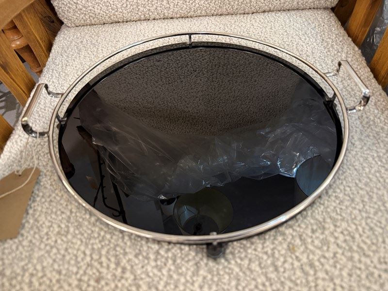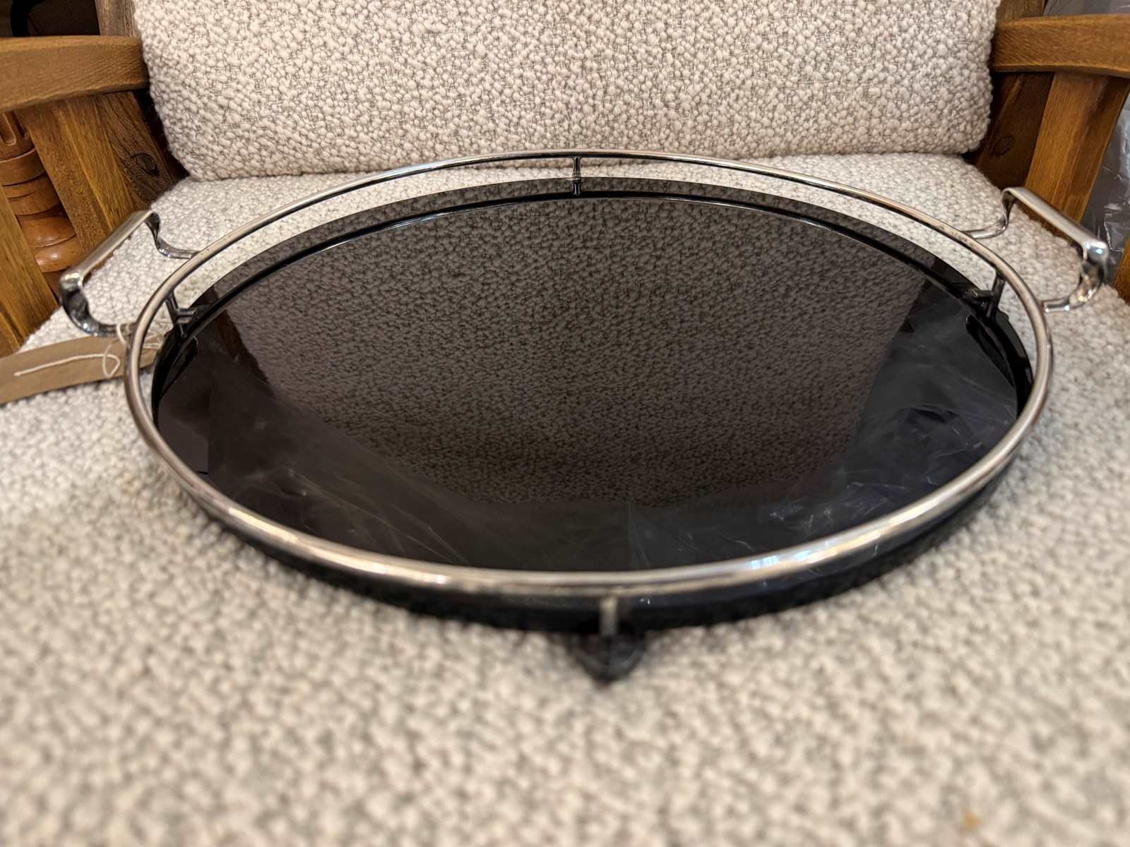 C1930 An English Black Vitrolite & Silver Plate Round Tray