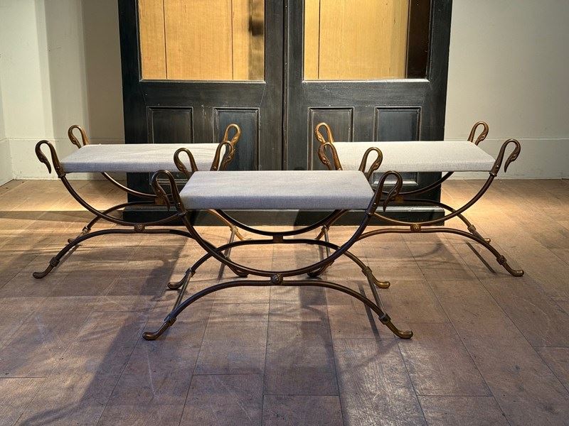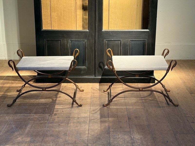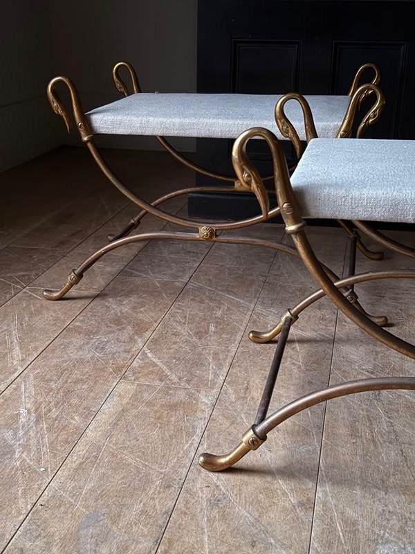 C1940 A French Brass & Bronze Swans Head Stool by Maison Jansen - 1 available.