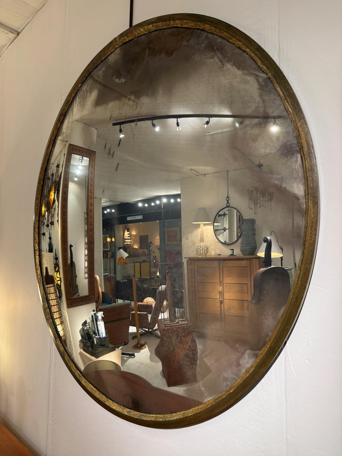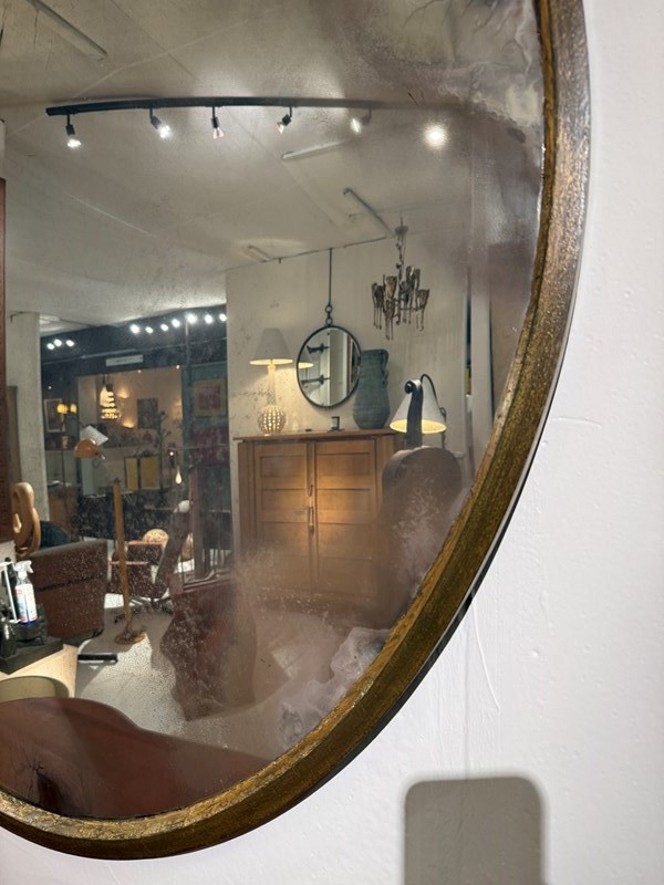 C1950 A Huge Convex Mirror from Central Europe in a gilt iron frame.